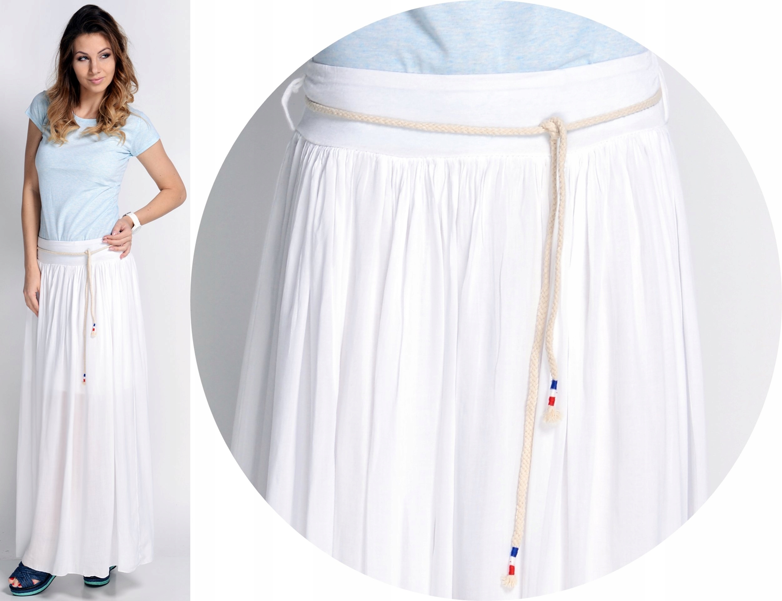 Біла довга спідниця з поясом