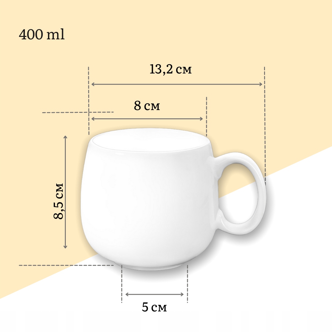 КРУЖКА ДЛЯ КАВИ І ЧАЮ БІЛА ПОРЦЕЛЯНА 400 МЛ 2 ШТ.