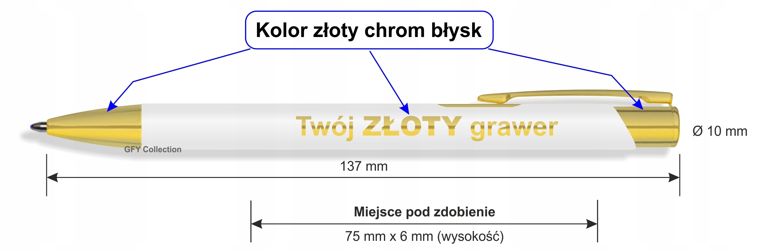 Ім'я та прізвище або коротке вигравіруємо лазером. текст ручкою безкоштовно. Ефективне гравірування вашого тексту в золотистому хромі того ж кольору, що й обробка ручки.