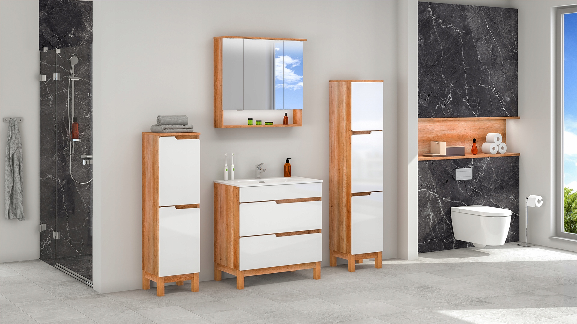 Поєднання білих та декорів, що імітують справжню деревину, є класичним рішенням, яке ідеально працює в багатьох домовленостях. Це поєднання буде чудовим як у сучасних, так і в скандинавських, бохо чи еклектичних інтер'єрах. Меблі з колекції diana виготовлені з mdf та діловод, покриті прекрасними декорами. Це досить мінімалістичні продукти, які виглядають привабливими інтегрованими у багато різних домовленостей. Їх універсальний дизайн робить їх ідеально в поєднанні з багатьма прикрасами, плитками та фурнітурою для ванної кімнати.