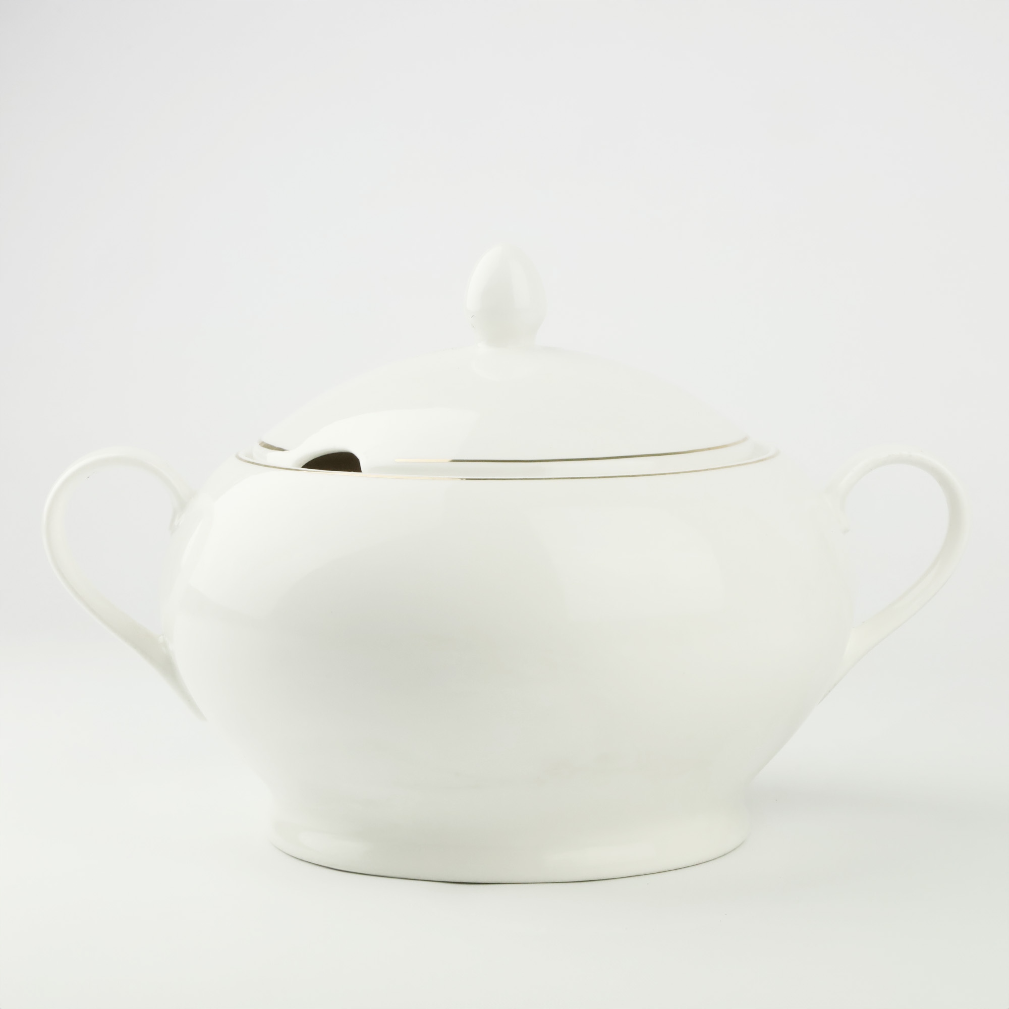 Біла ваза з золотим 3 -л ременем з кришкою для порцелянового бульйону Borscht