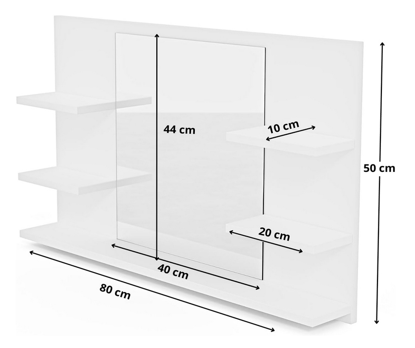 Модне та функціональне дзеркало з полицями та LED підсвічуванням, біле 80/50