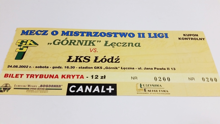 bilet GÓRNIK Łęczna - ŁKS ŁÓDŹ 24.08.2002
