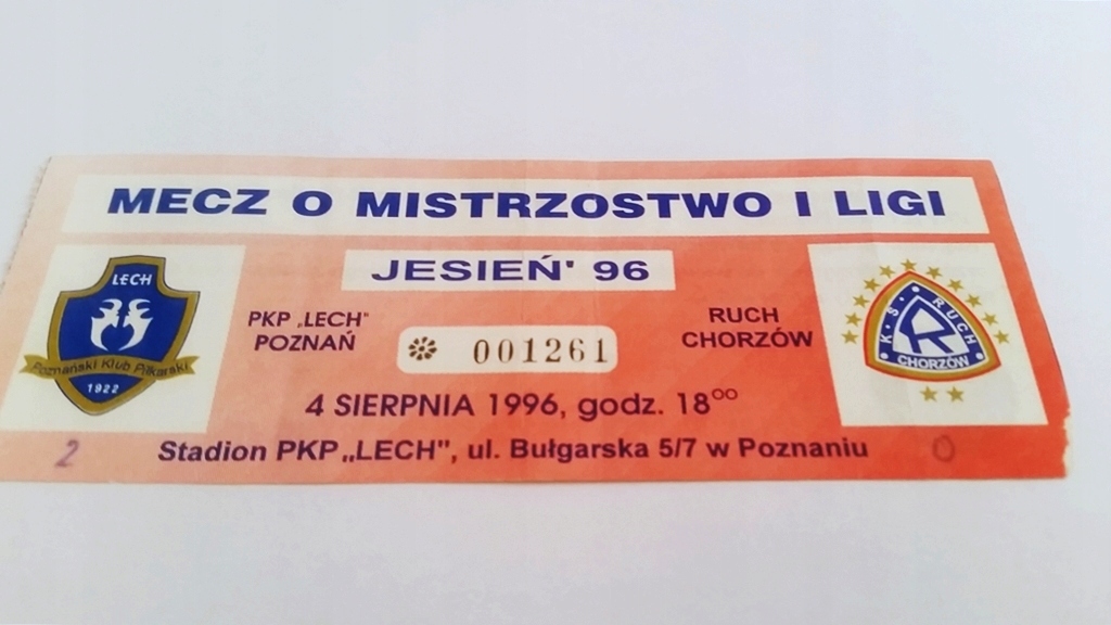 bilet LECH Poznań - RUCH Chorzów 04.08.1996