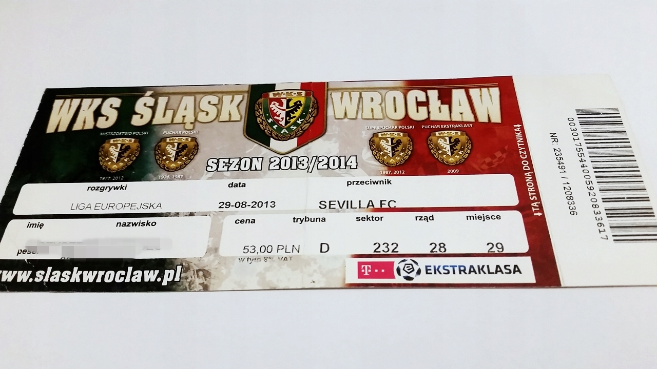 bilet ŚLĄSK Wrocław - SEVILLA FC 29.08.2013