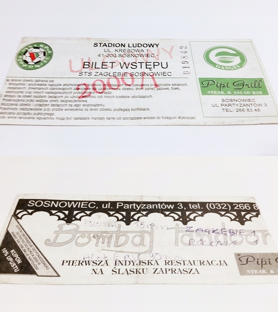 bilet ZAGŁĘBIE Sosnowiec - POLONIA Bytom 04.11.00