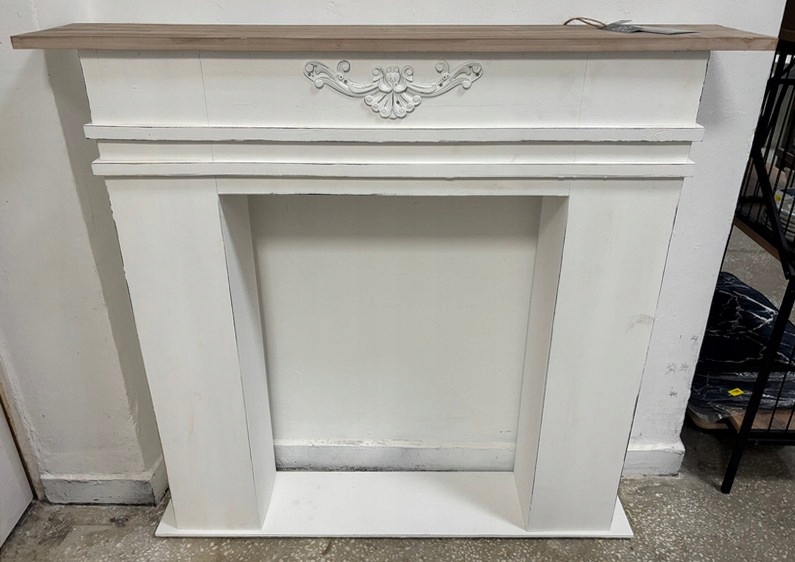 Білий дерев’яний камінний портал порталу Факінг -корпус 108x20x100cm