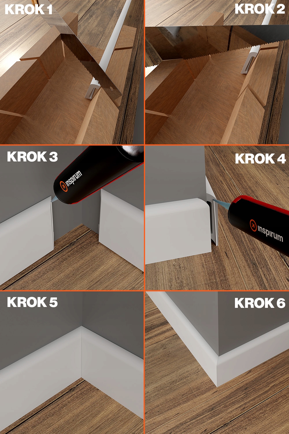 Крок 3 і 4 - встановлення плінтусів у внутрішніх і зовнішніх кутах: