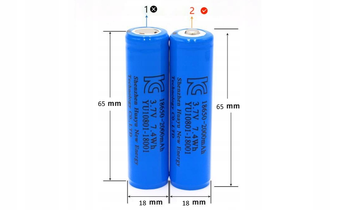 Переконайтеся, що батареї 18650, які ви купуєте, мають підняті наконечники електродів.