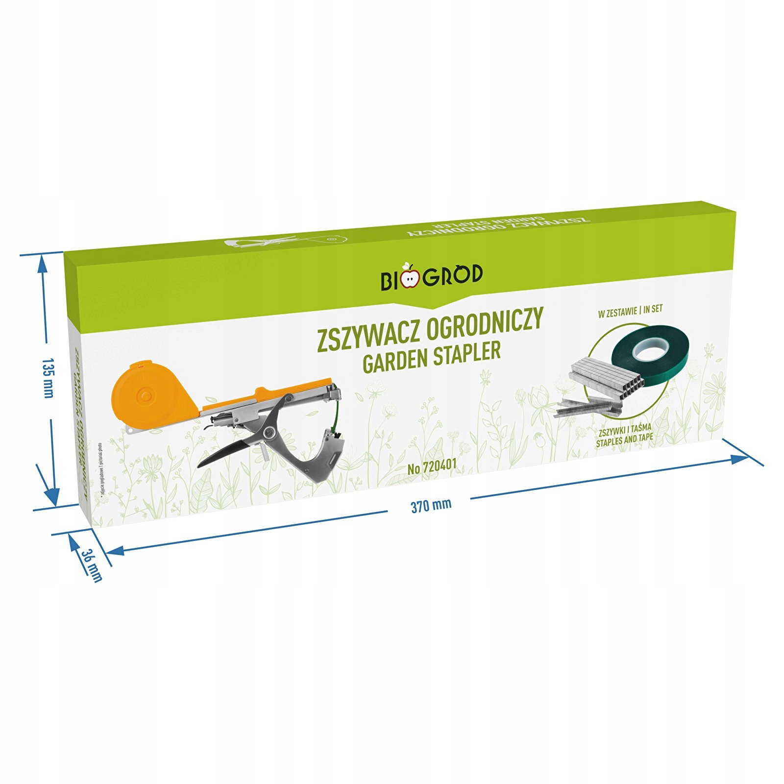 Запропонований садівничий степлер - це повний набір, що містить необхідну стрічку ПВХ завдовжки 30 м, набір 10 000 скоб та запчастини: лезо та пружина.