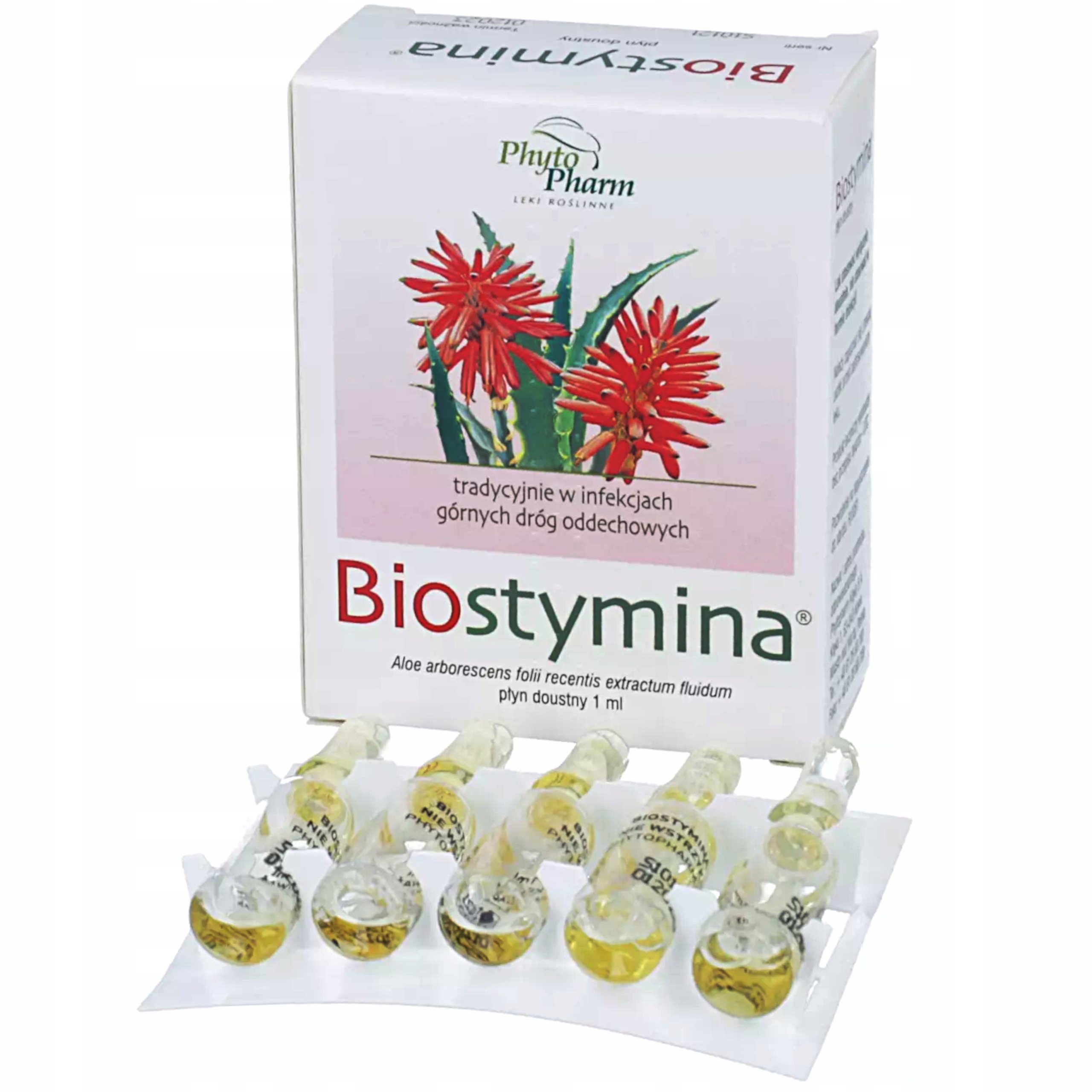 Біостимін — препарат, формула якого створена на основі водного екстракту свіжого алое віра. листя . Препарат призначений для перорального застосування дорослим, підліткам і дітям старше 5 років. Показаннями до прийому препарату є бактеріальні та вірусні інфекції верхніх дихальних шляхів. Також Біостімін можна застосовувати при встановленому лікарем зниженні імунітету і як допоміжний засіб при рецидивуючих інфекціях верхніх дихальних шляхів та ін. Ефективність препарату заснована виключно на тривалому застосуванні та досвіді. Препарат являє собою рідину в скляній ампулі ємністю 1 мл. В упаковці 10 штук. Відповідальною особою є Phytopharm Klęka S.A.