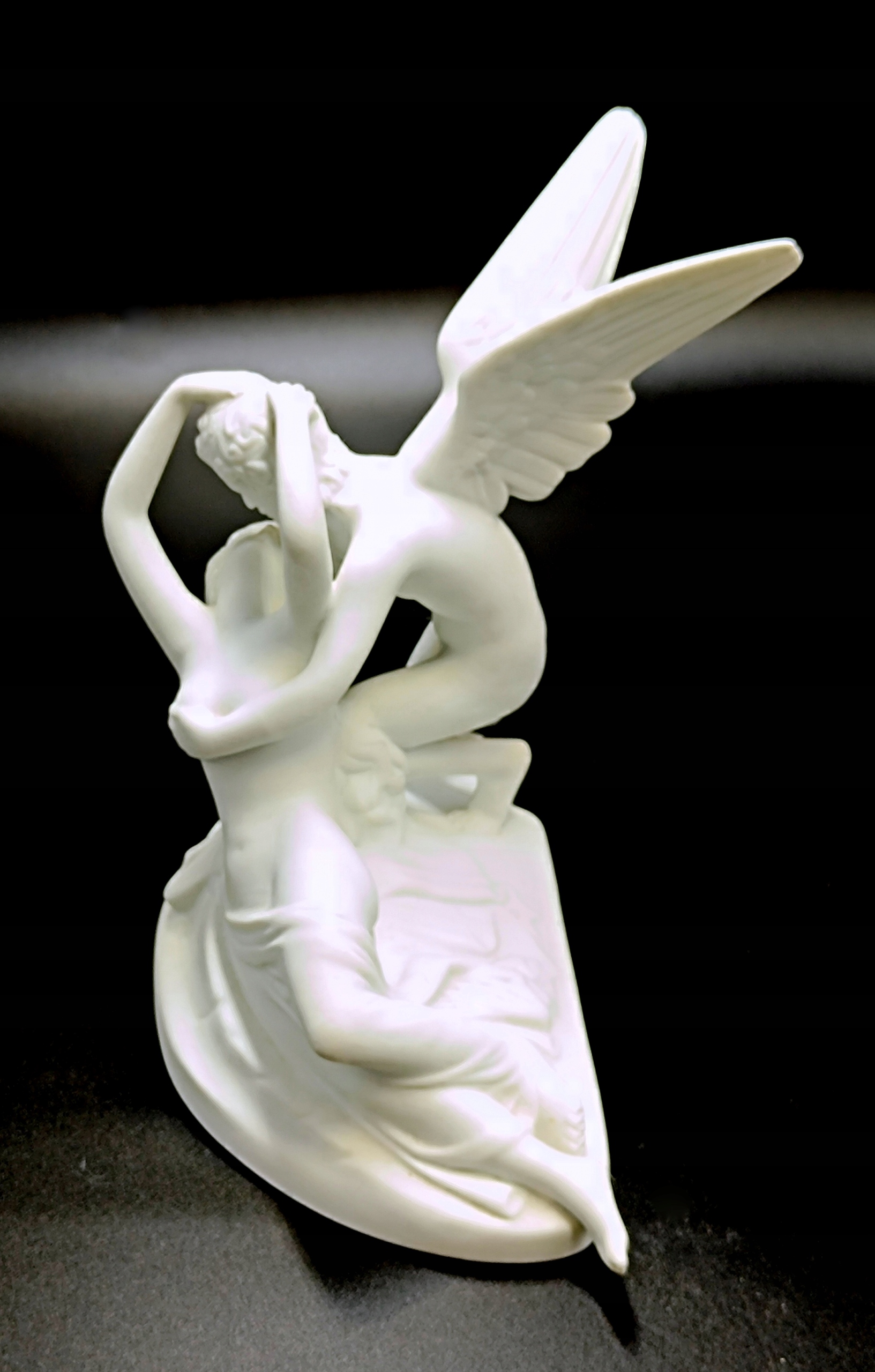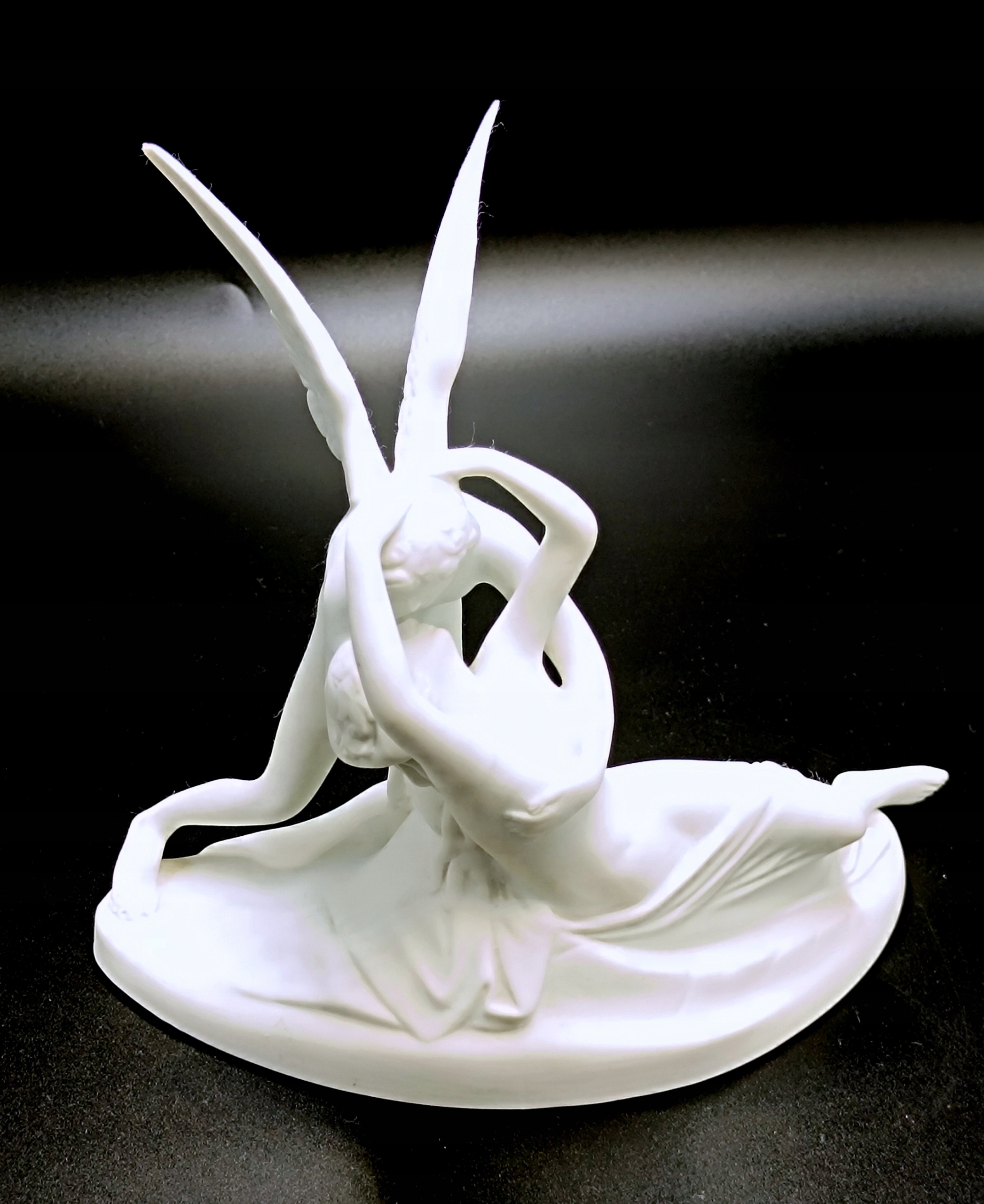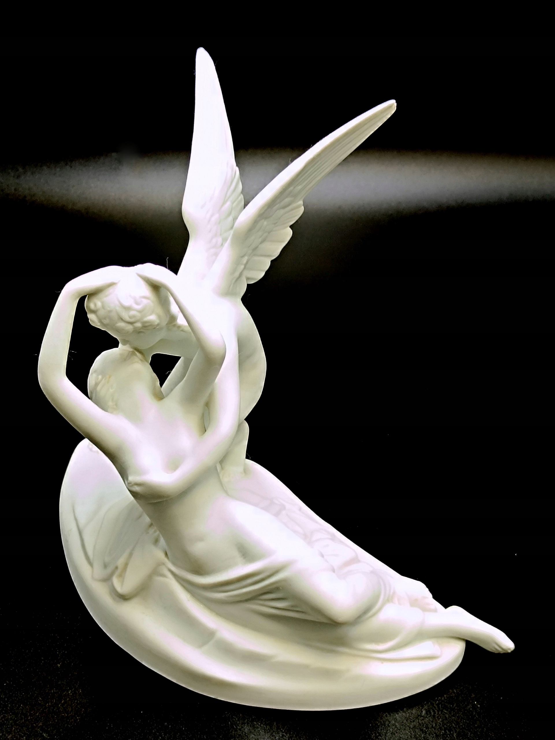 Фігурка виготовлена з високоякісної білої неглазурованої порцеляни і зображує сцену КУПІДОН І ПСИХЕЯ (Психея прокинулася від поцілунку Купідона). Вона була вперше виконана в 1787 році і є прикладом класичного способу подання одержимості та емоцій. Його навіть виставляли в паризькому Луврі. Психея в грецькій міфології — богиня, уособлення людської душі, зображена у вигляді молодої дівчини з крилами. Знизу фігурка підписана.