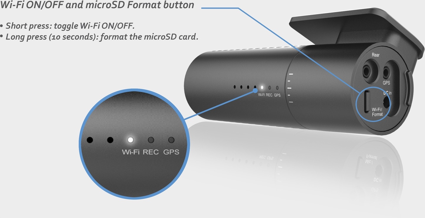 Пристрій має комунікацію Wi-Fi, що дозволяє переглянути камери з камер на смартфоні або планшеті, не видаляючи карту пам'яті з камери. Крім того, ви можете відображати живу камеру на екрані телефону або планшета. Додаток дозволяє надсилати фільми на Facebook безпосередньо з телефону або планшета.