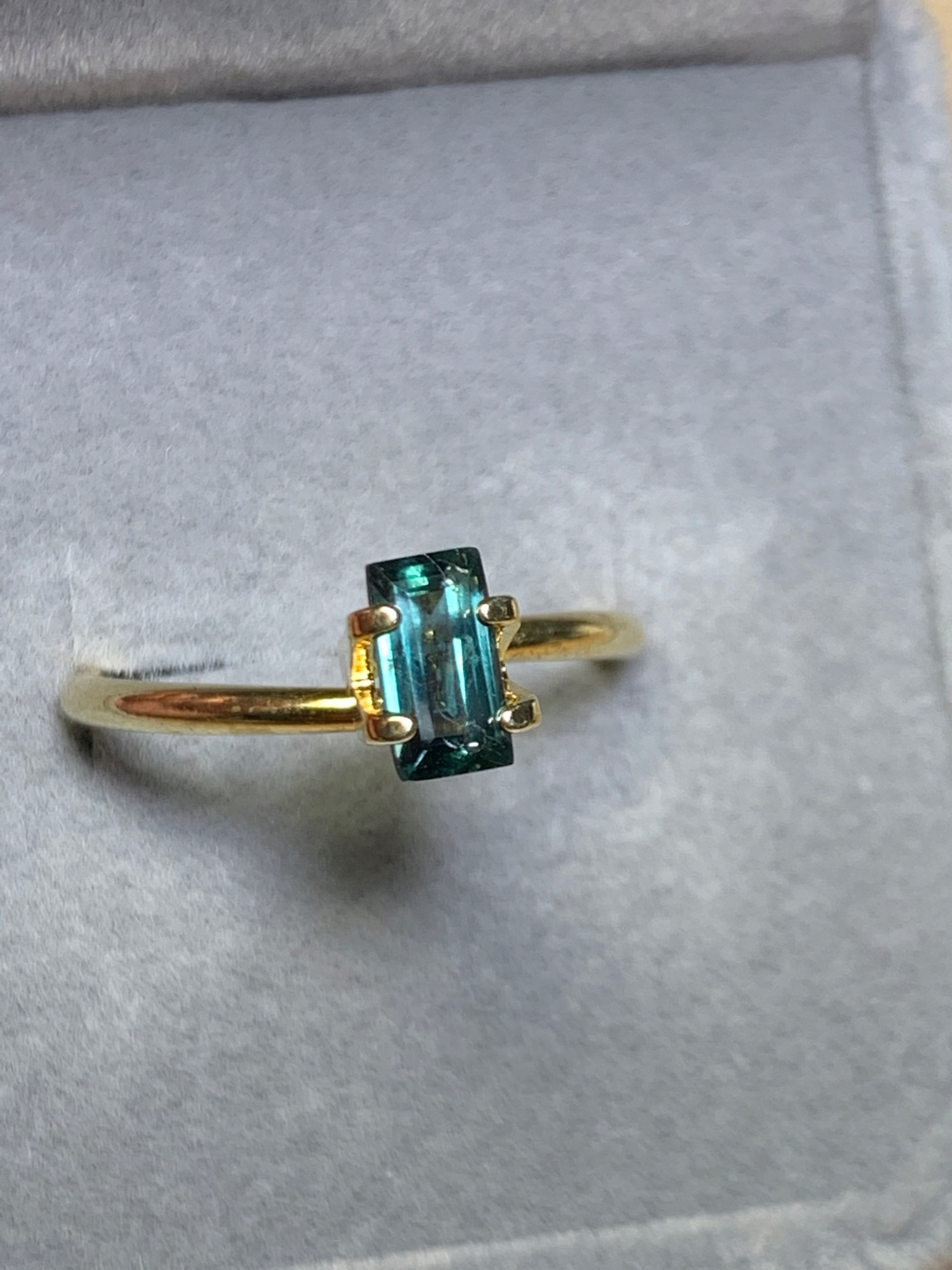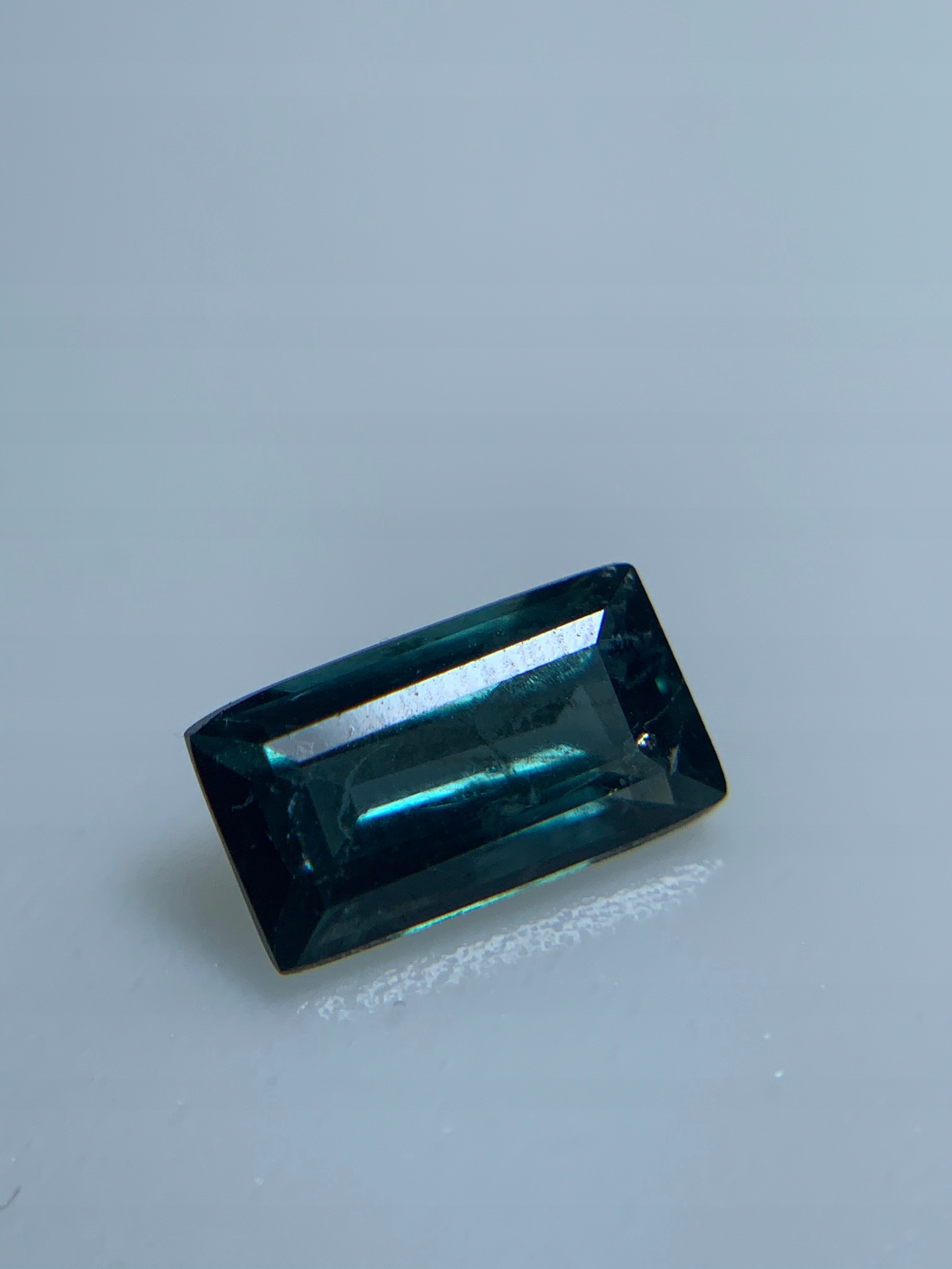 - Прямокутник/багет, натуральний сапфір з олександритовим ефектом, зелено-блакитний, без видимих ознак покращення