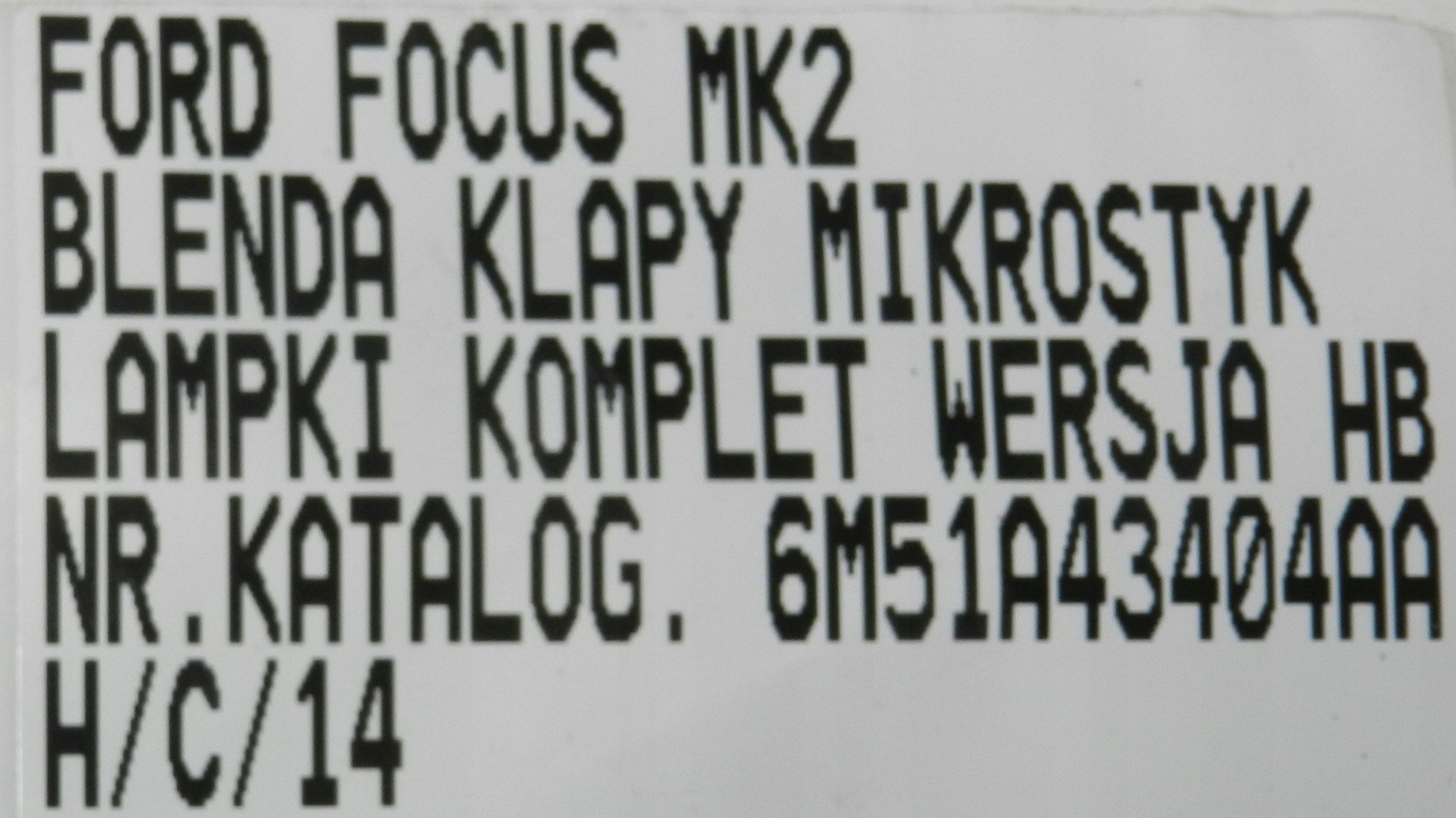 BLENDA KLAPY TYŁ BAGAŻNIKA FORD FOCUS MK2 04-07 WERSJA HB 6M51A43404AA