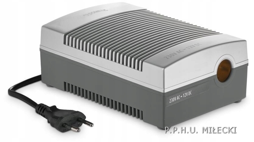 • змінює напругу мережі з 230 В (змінного струму) на 12 В (постійного струму)
