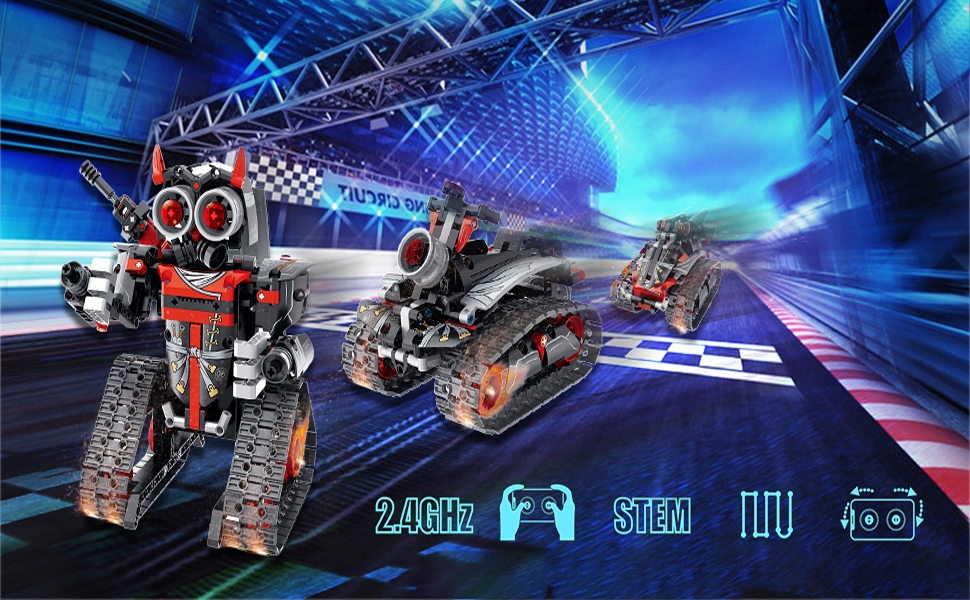 ⭐ 3 в 1 конструкція, яка може бути перетворена на дистанційно контрольований робот, ланцюговий автомобіль та гоночний резервуар . >