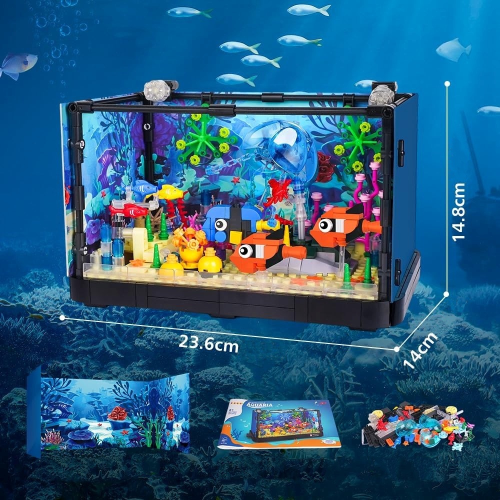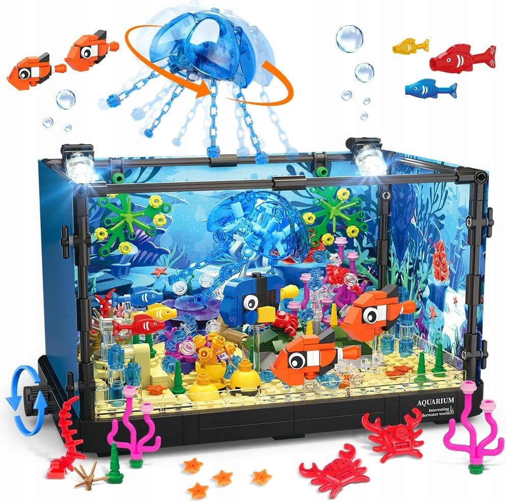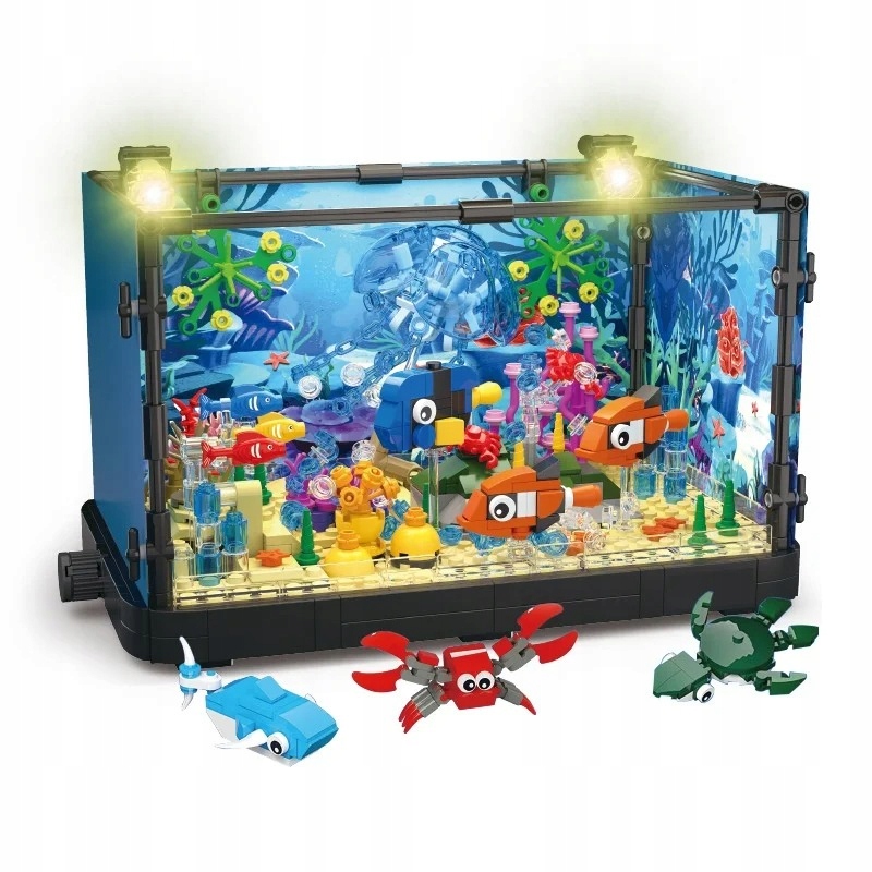 Цей конструкторський набір акваріумів дозволяє відтворити реальний підводний світ, включаючи різноманітне морське життя, наприклад, медузи, риба, крабів та коралів. Надмірна та барвиста конструкція дозволяє дітям відкривати океан вдома. Вчення про морських тварин, привертає увагу та забезпечує розважальні години.