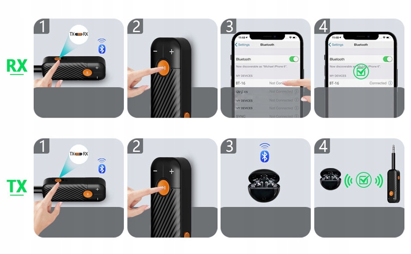 - Bluetooth transmitter function: connect 1 pair of Bluetooth headphones