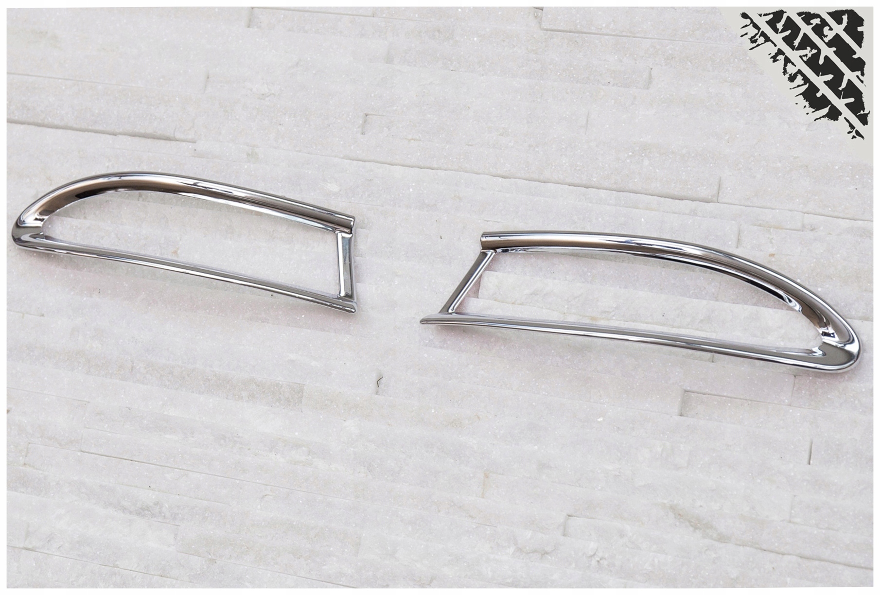 У набір входить набір із двох накладок на задні протитуманні фари. Виріб виготовлено з високоякісного хромованого ABS пластику. Вони кріпляться за допомогою двостороннього скотча Scotch 3M, наклеєного на внутрішню сторону елементів. Ми рекомендуємо професійне встановлення.