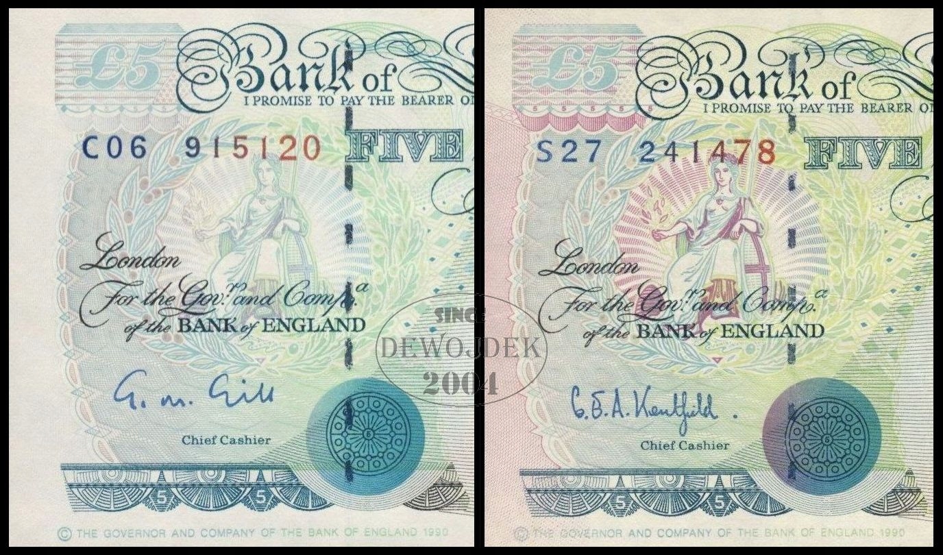 BNA - ANGLIA WIELKA BRYTANIA 5 Funtów 1990 # P382a BŁĄD # BRAK KOLORU # XF