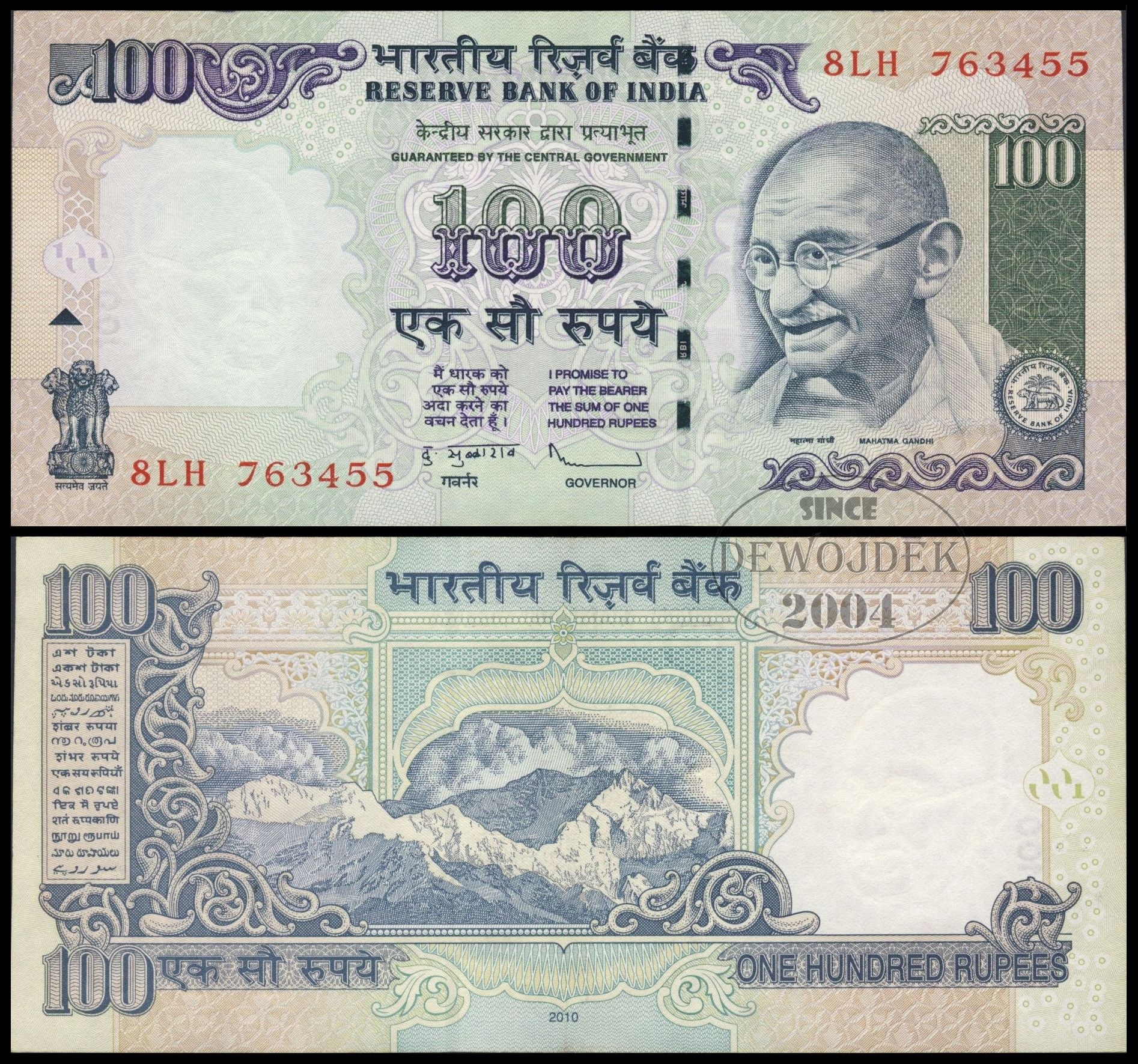 BNA - INDIE 100 Rupii 2010 8LH # bez litery # Subbarao # P98w # XF-