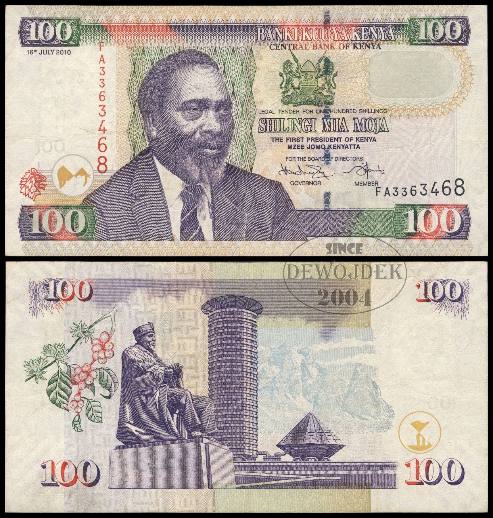 BNA - KENIA 100 Szylingów 2010 FA # P48e # VF-