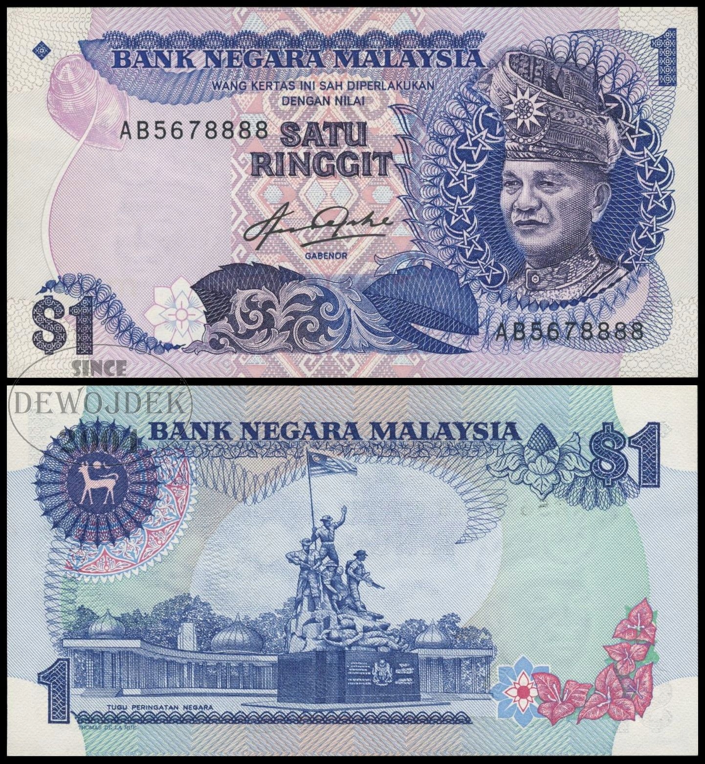 BNA - MALEZJA 1 Ringgit 1981 AB 5678888 # P19A # RZADSZY # XF+