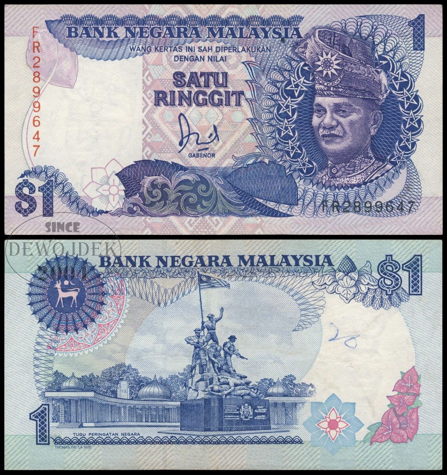 BNA - MALEZJA 1 Ringgit 1989 FR 2899647 # P27b # VF