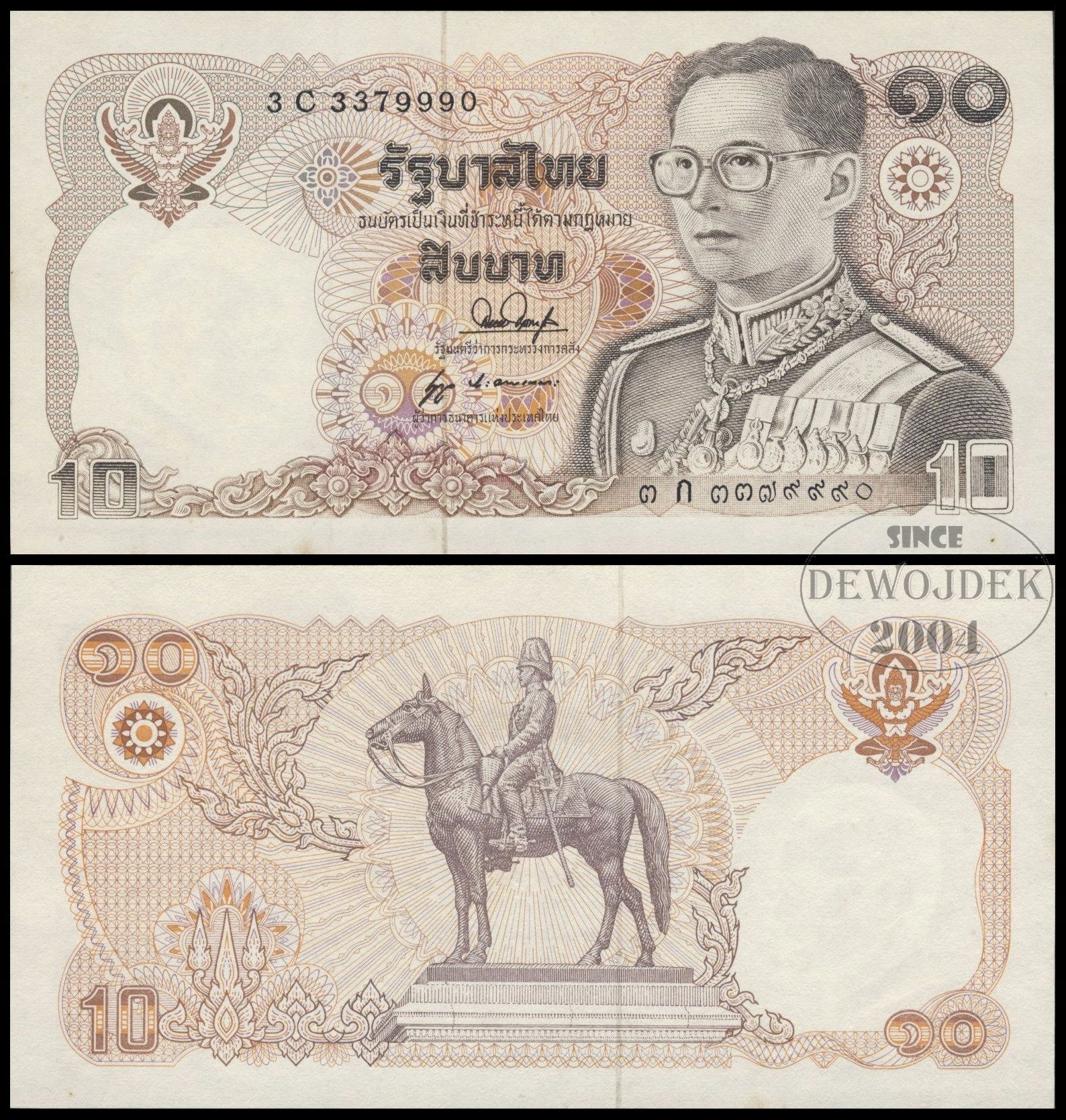 BNA - TAJLANDIA 10 Baht 1980 seria 3C nr 337 999 0 # P87 # XF