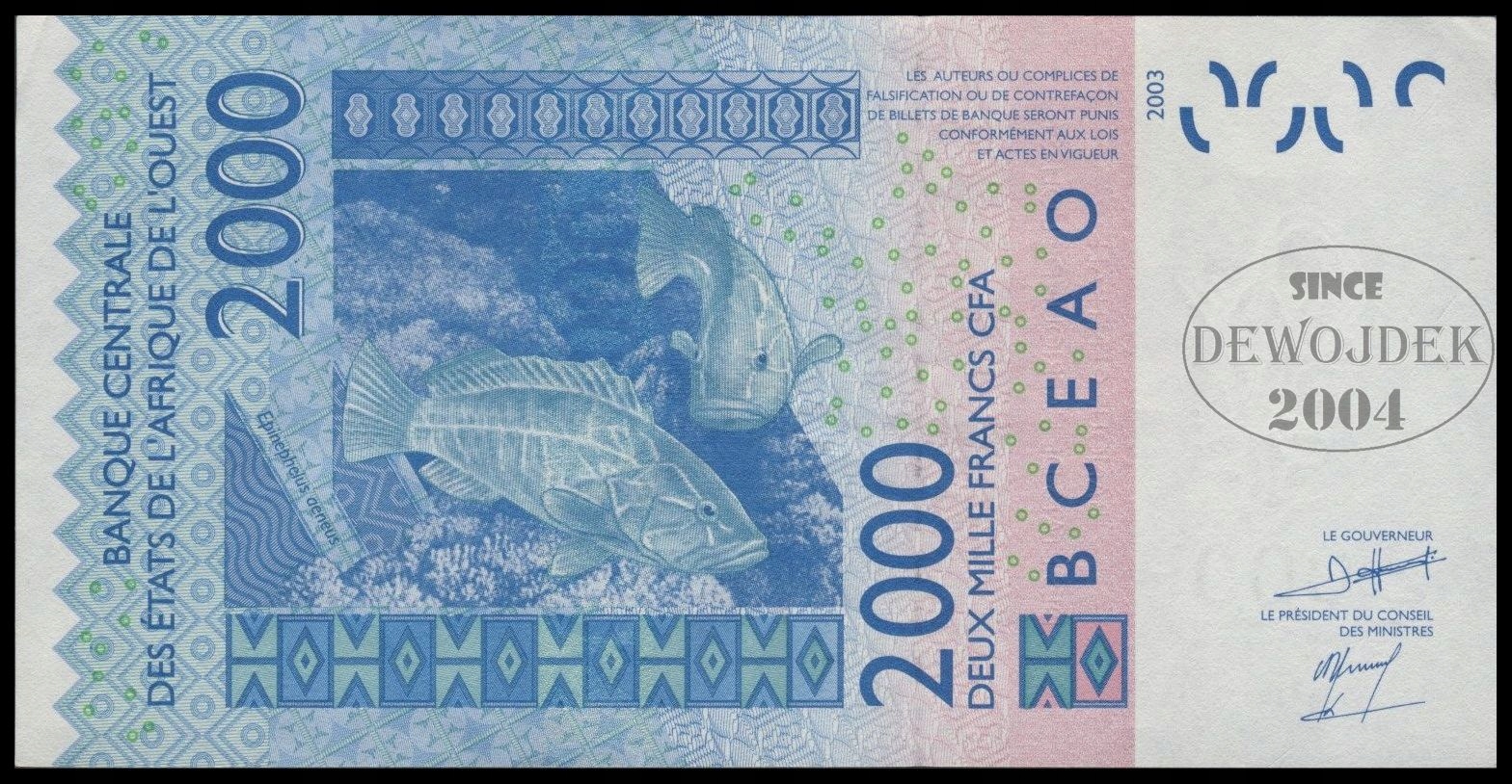 BNA - WYBRZEŻE KOŚCI SŁONIOWEJ 2000 Franków CFA 2009 A # AFRYKA # P116Ah XF