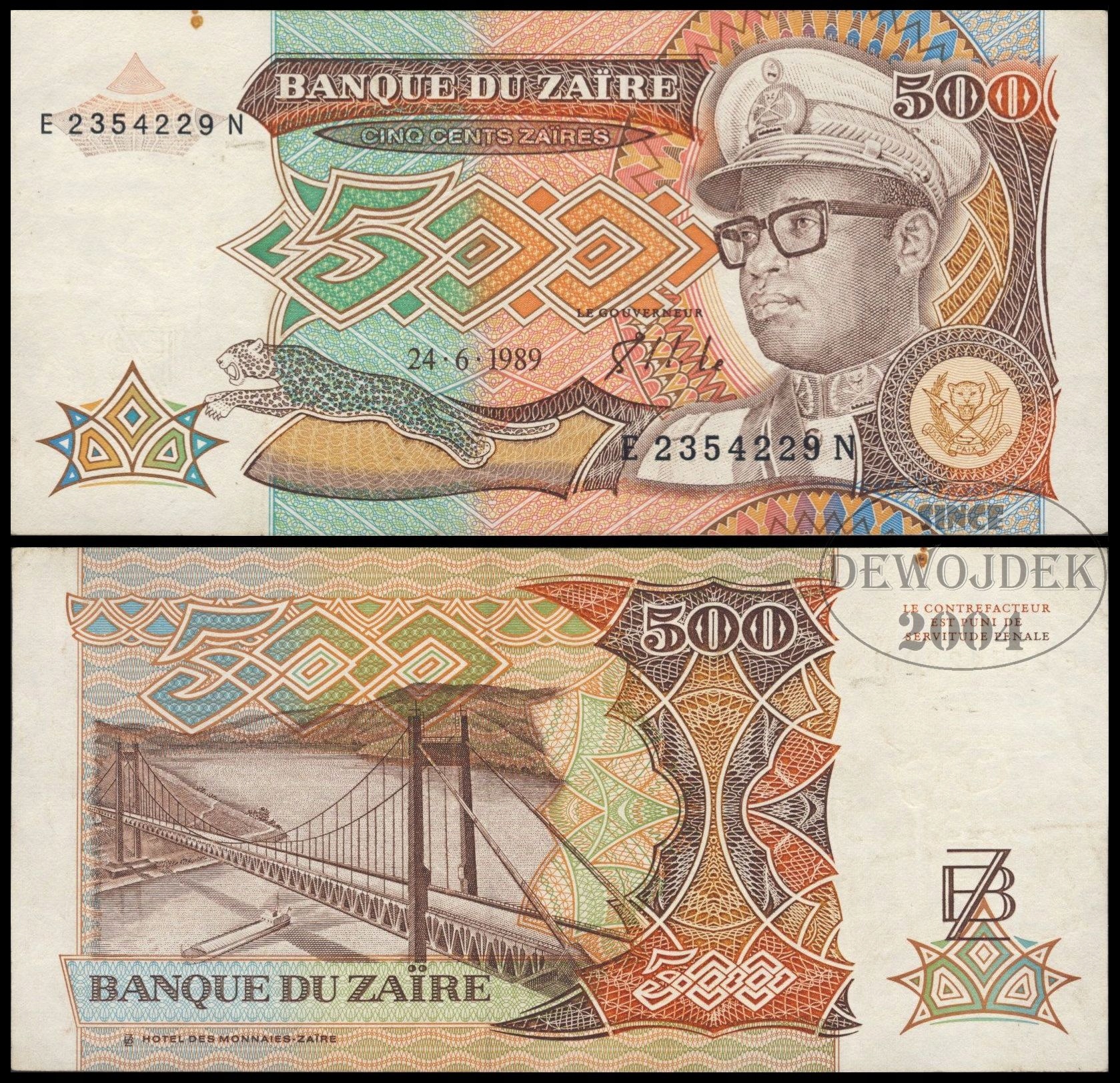 BNA - ZAIR 500 Zaires 1989 E 2354229 N # P34 # VF+