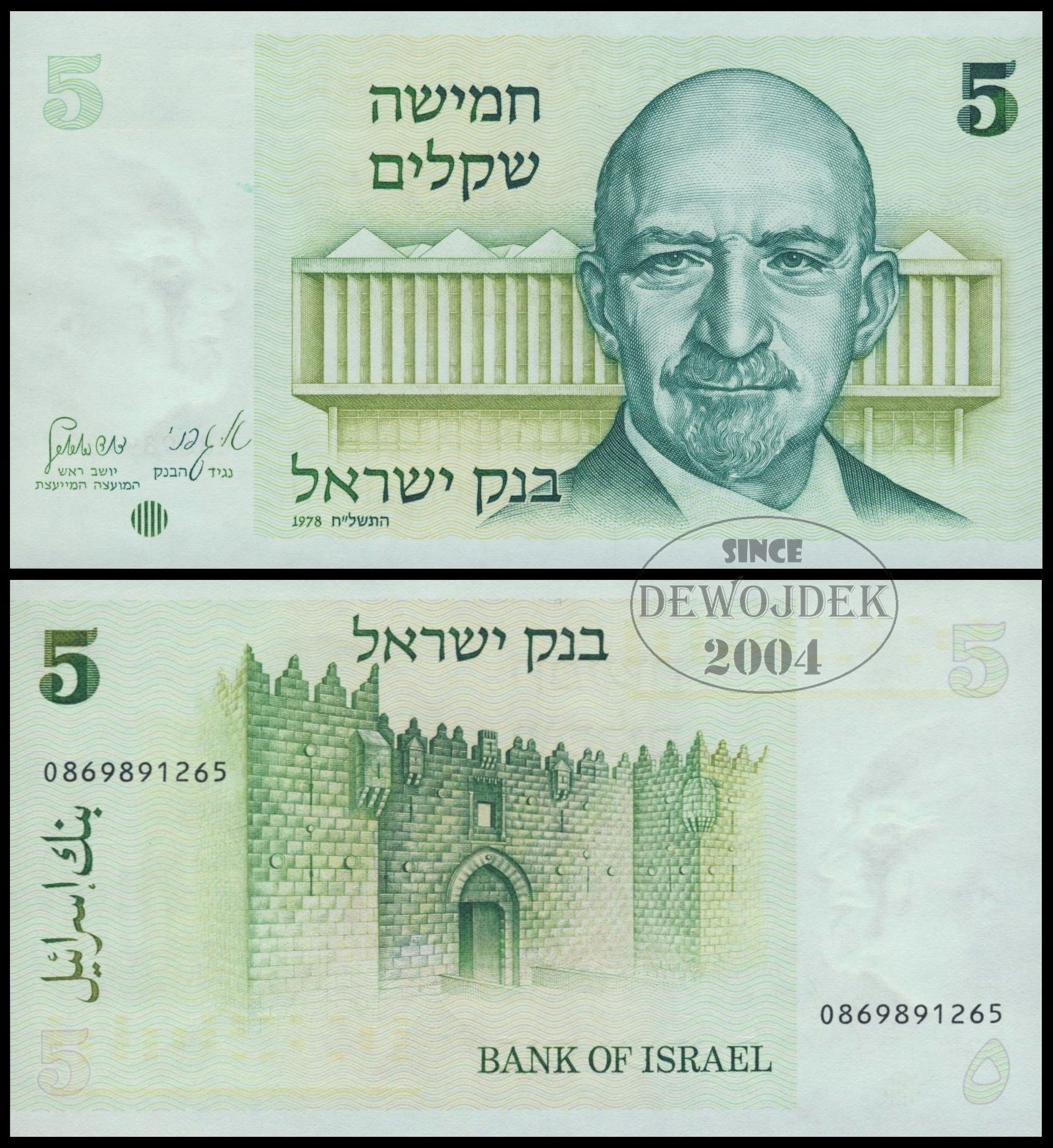 BNB - IZRAEL 5 Sheqalim 1978 / 1980 nr 0869891265 # P44 # UNC