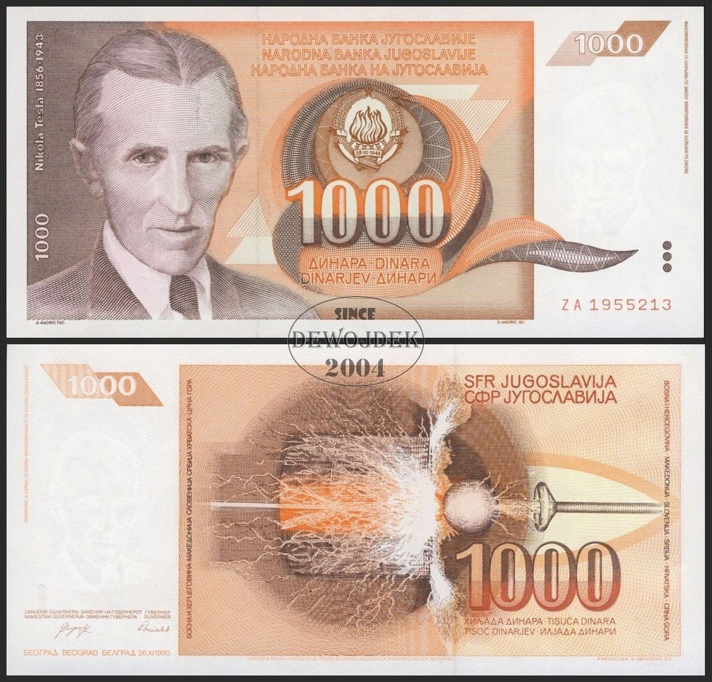 BNB - JUGOSŁAWIA 1000 Dinarów 1990 ZA # SERIA ZASTĘPCZA # P107r # UNC