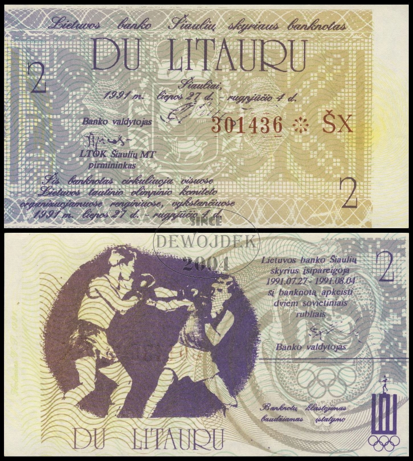 BNB - LITWA SZAWLE Šiauliai 2 Litu Litai 1991 # 301436 ŠX # 2 Litauru # UNC