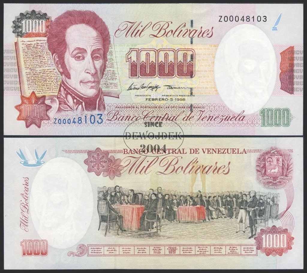 BNB - WENEZUELA 1000 Bolivares 1998 Z 00048103 SERIA ZASTĘPCZA P76cr # UNC