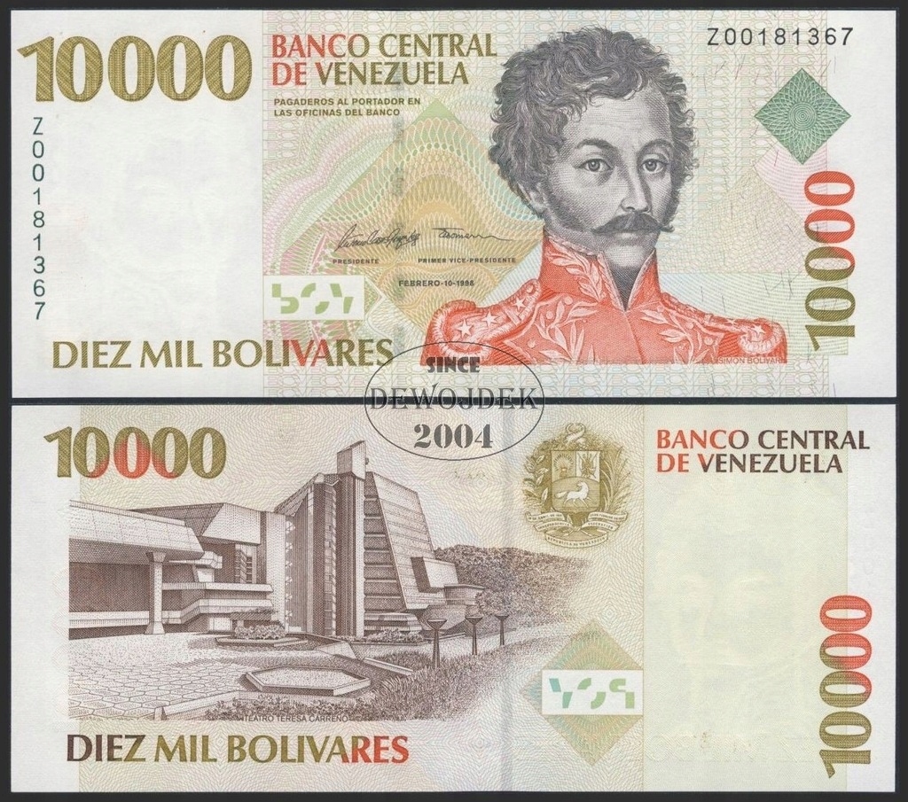 BNB - WENEZUELA 10000 Bolivares 1998 Z 00181367 SERIA ZASTĘPCZA P81r # UNC