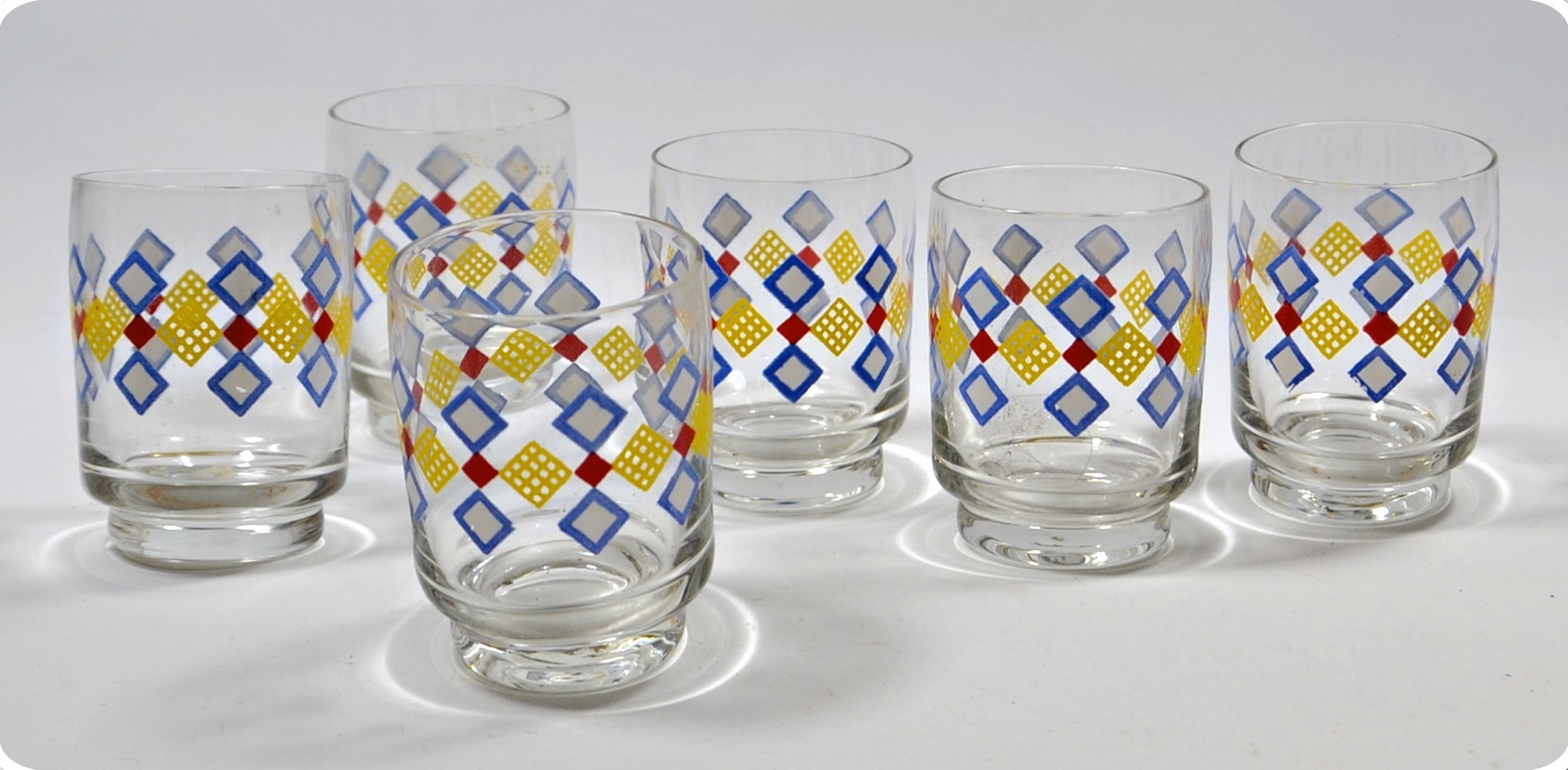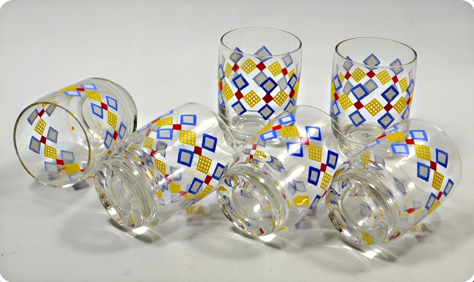 Дизайн 1960-1970-х років. Гарний і дуже вишуканий, рідкісний набір - стійкий. Пропозиція включає 6 шт. Я вважаю, що вони підходять для горілки чи лікеру.