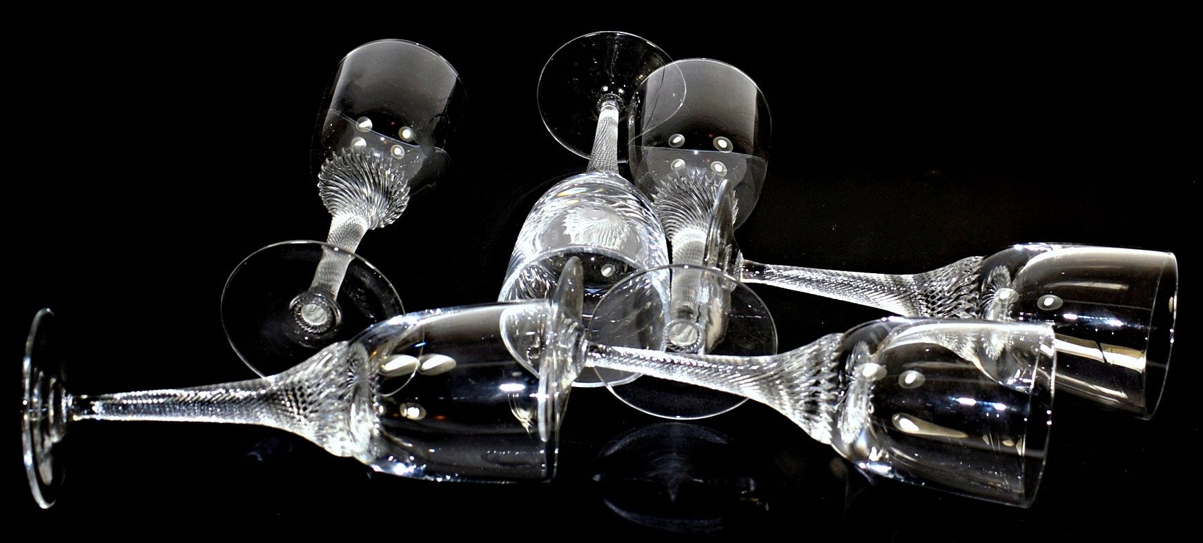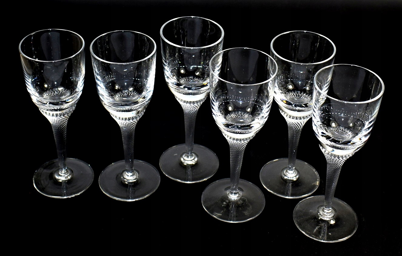 Старий набір із 6 старих або вінтажних келихів з безбарвного скла - на красивих кучерявих ніжках. p>