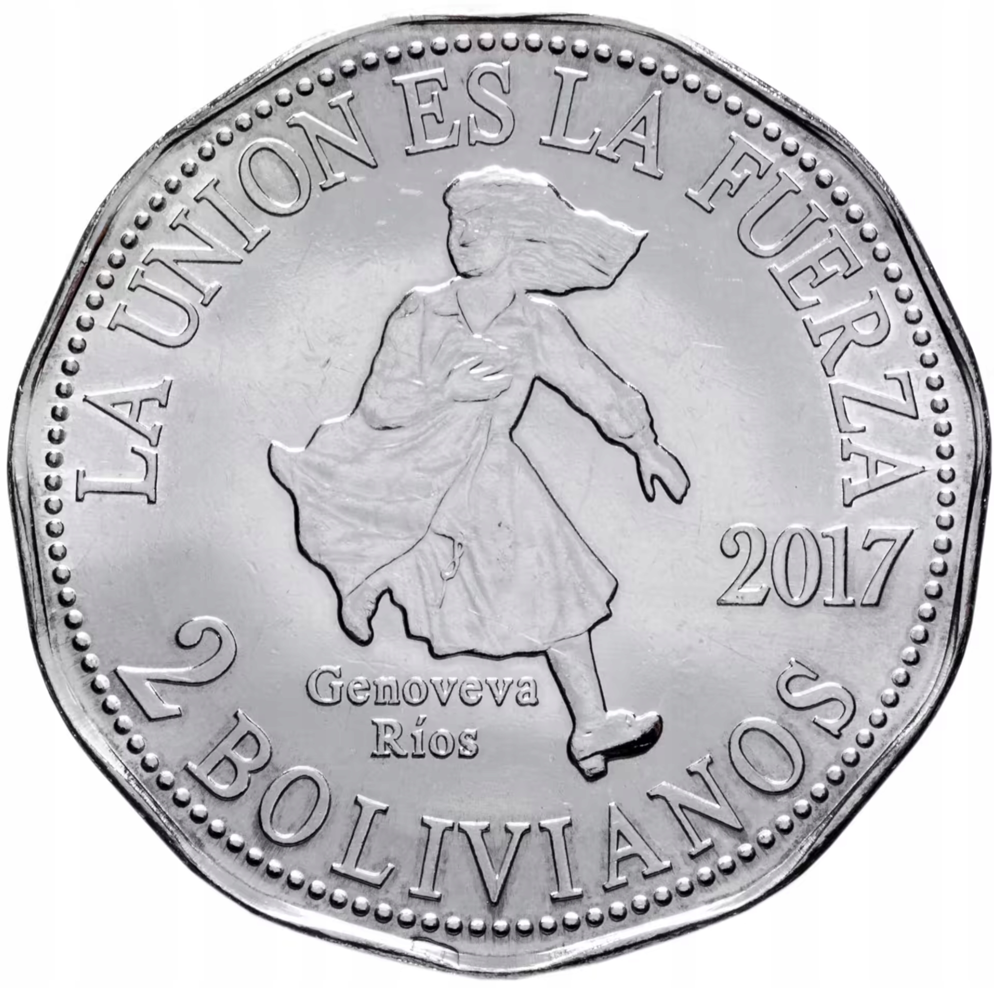 Bolivia 2 Bolivianos 2017 UNC Genoveva ríos випадково