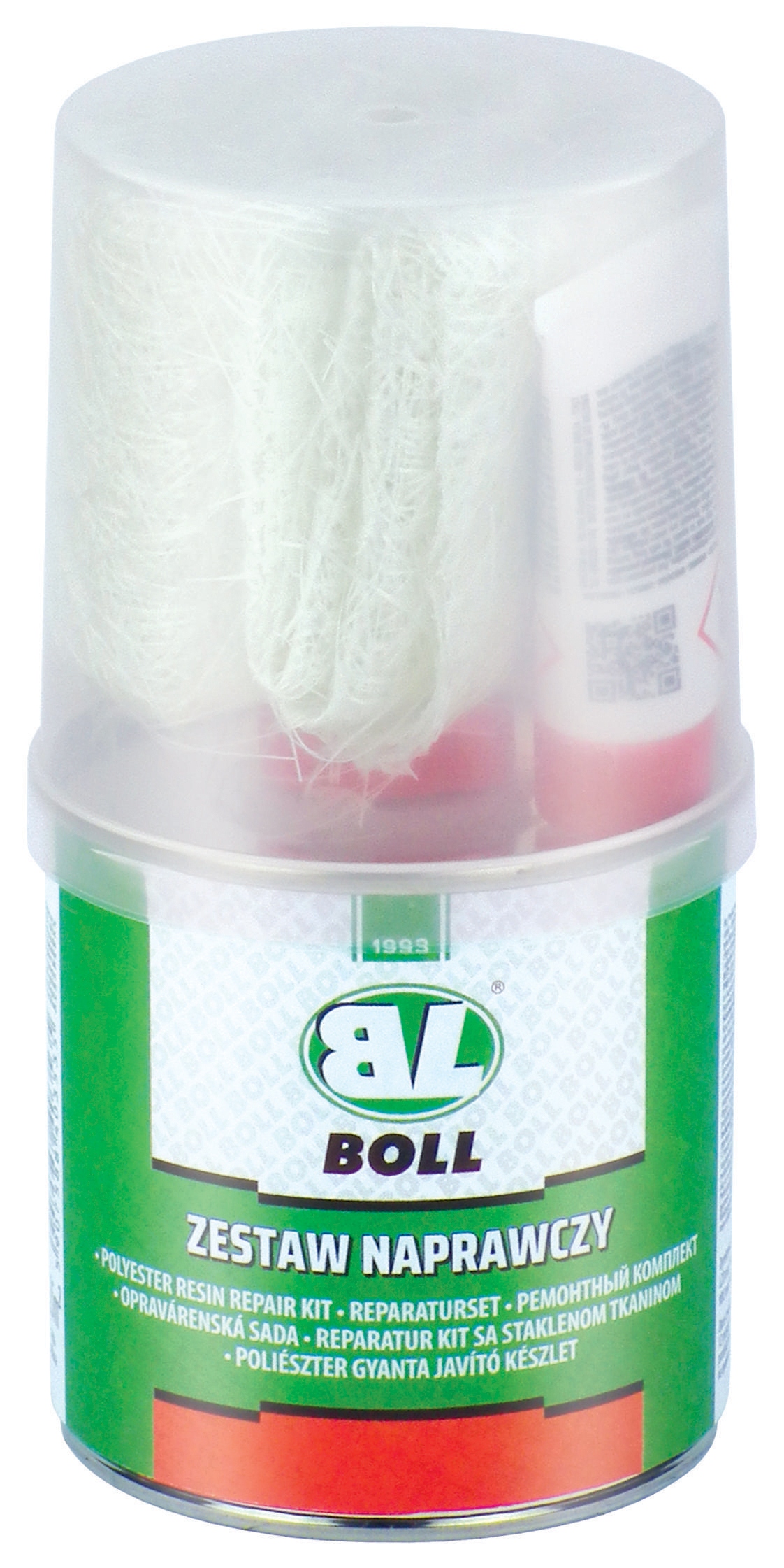 Ремонтний набір BOLL складається з поліефірної смоли (242 г), затверджувача (8 г) і скла мат (0,25 м2). Застосовується як для заповнення значних втрат матеріалів у кузовах автомобілів, човнів, причепів тощо, так і для зміцнення та посилення конструкції ремонтованих елементів. Смола має дуже хорошу адгезію до металевих, пластикових поверхонь, сталі, скла, дерева та бетону. Він стійкий до температури до 80°C, погодних умов, бензину, жиру, масла, розбавлених кислот і лугів. Характеризується високою еластичністю і коротким часом твердіння. Після застигання має дуже високу механічну міцність, його можна шліфувати та покривати будь-якою поліефірною шпаклівкою.
