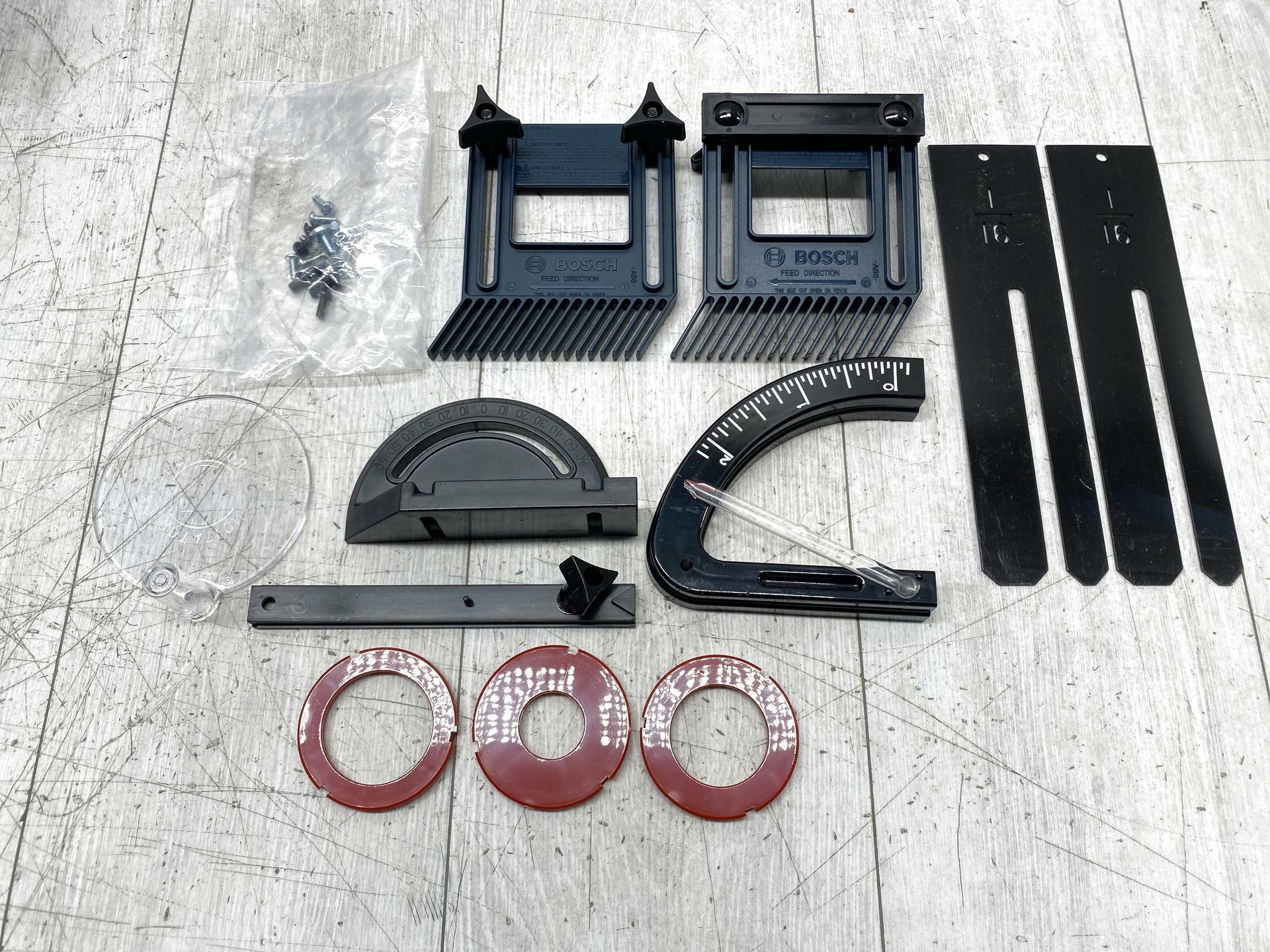 Портативний Bosch Professional RA1141 MUR MUT -UP Таблиця має гладкий ламінований верх MDF, а також регульовані ламіновані передні панелі з MDF для кращої підтримки. Високий обмежувач підтримує більш високі матеріали, а подвійні пір’яні дошки забезпечують додатковий контроль при обслуговуванні матеріалу на столі. Існує трохи індикатора висоти для легшого встановлення бітового та підвищення точності різання. Завдяки легкій -сторічній складовій структурі, ця попередньо зібрана таблиця має складні ноги з місцями для зберігання для зручності та передачі. Коли фрезерування вигнуті оброблені елементи, стартовий штифт і покриття допомагають підтримувати заготовку, щоб дозволити легший контроль.