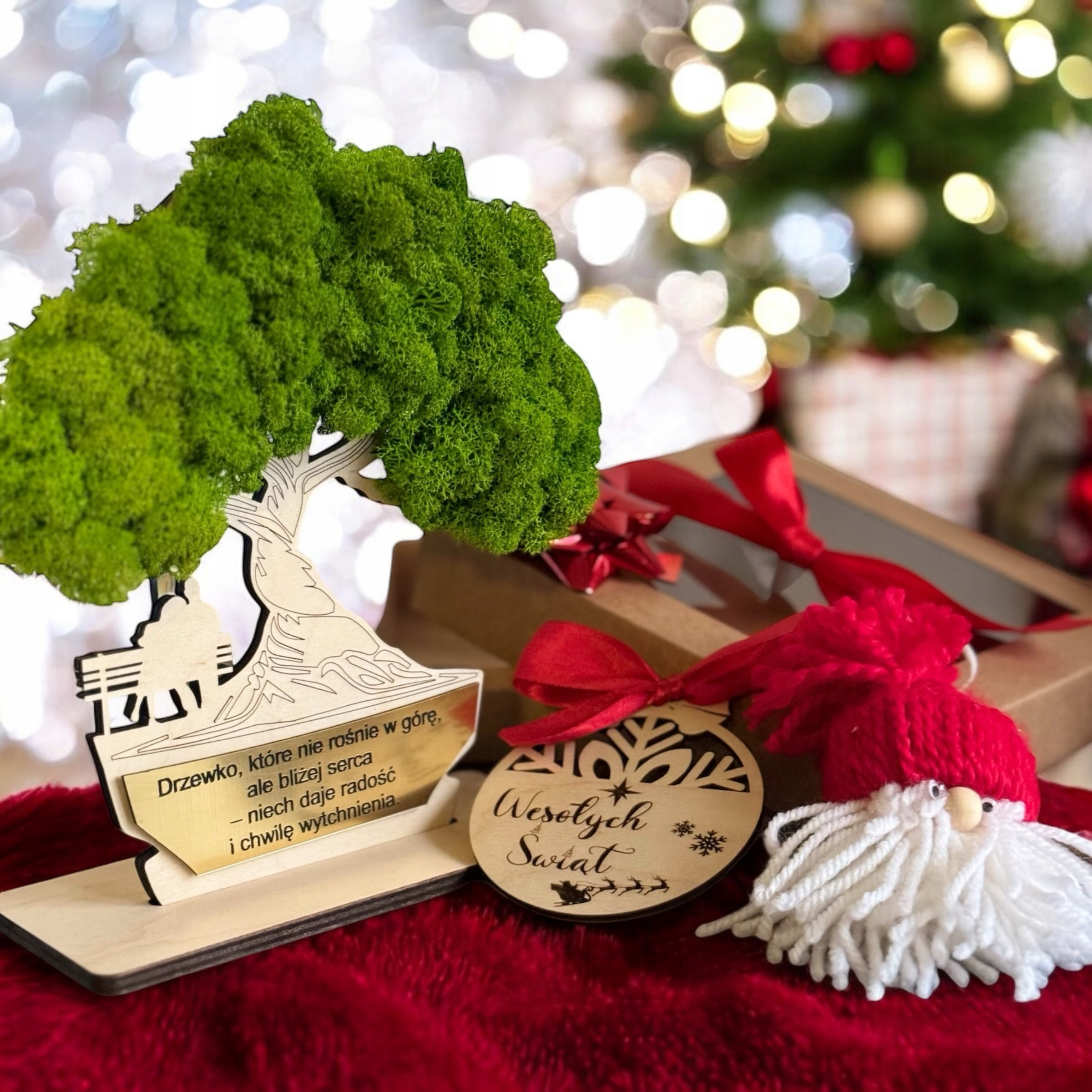 BOX prezentowy Prezent na ŚWIĘTA DRZEWKO BONSAI mech chrobotek ZESTAW