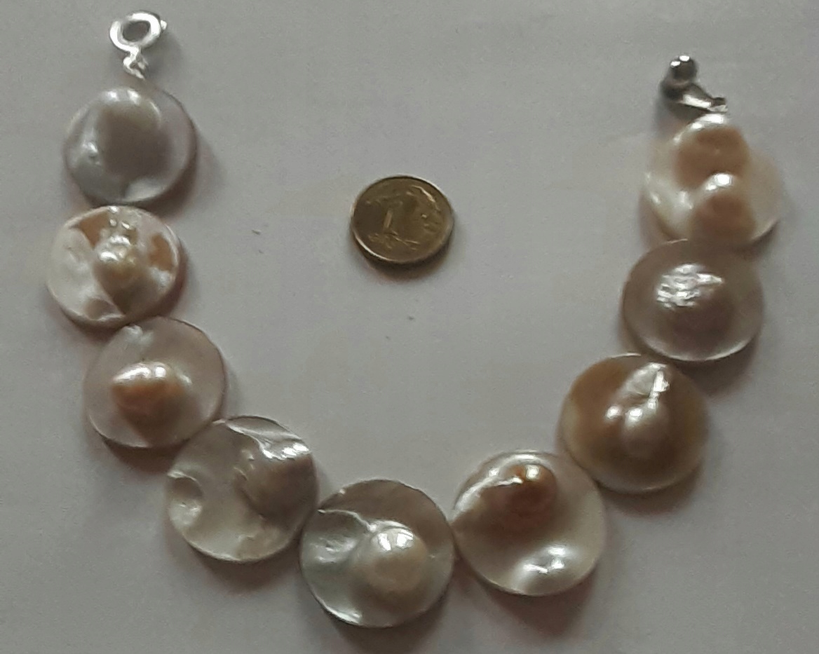 Bransoletka: muszle, perły nienarodzone, zapięcie na zatrzask