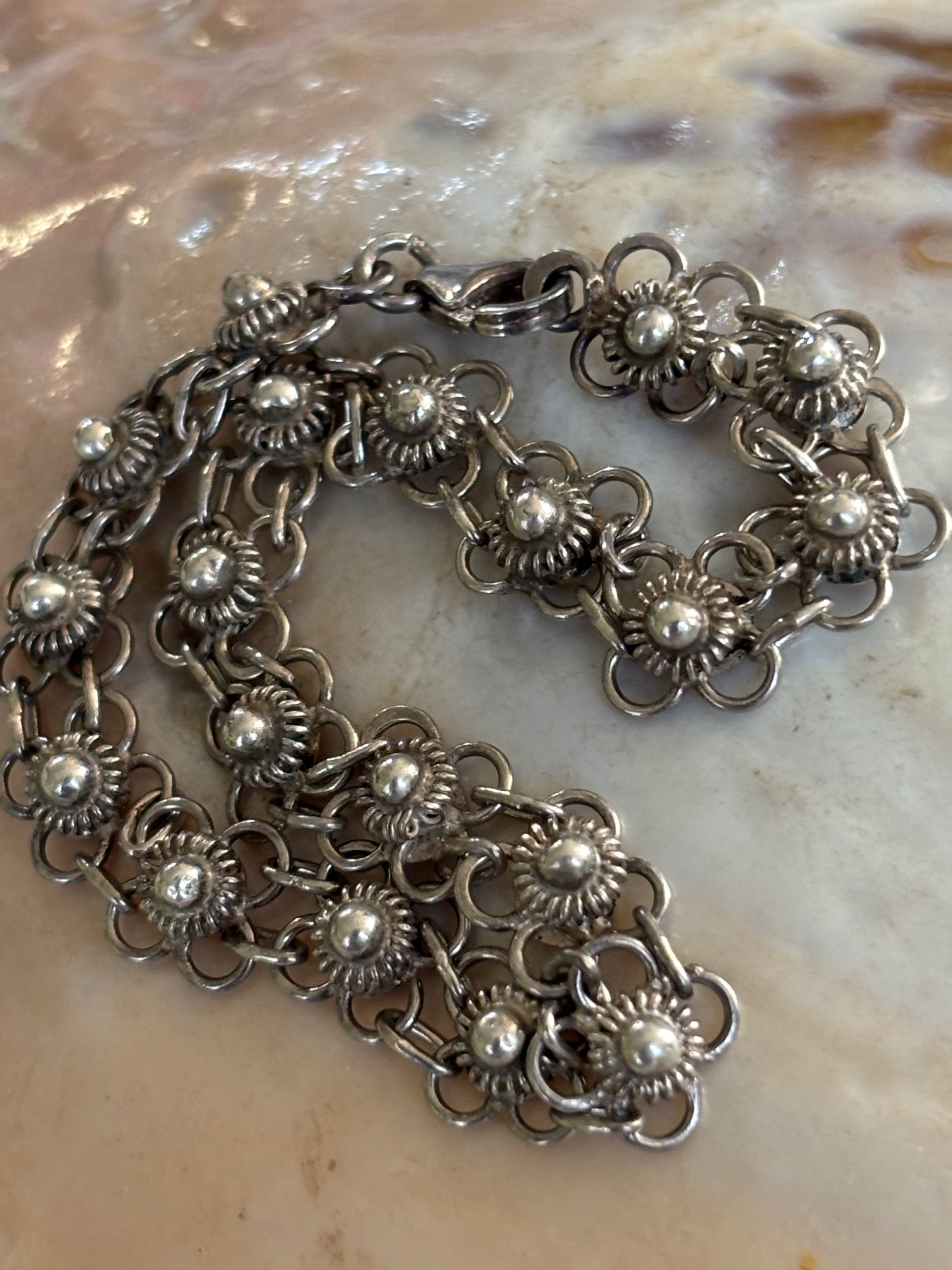 Bransoletka stara srebrna filigran kwiatki PRL 875 kapustki