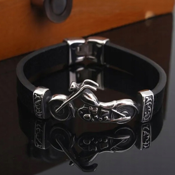 Браслет Чоловічий шкіряний мотоцикл для мотоцикліста для подарункової сталі 316L