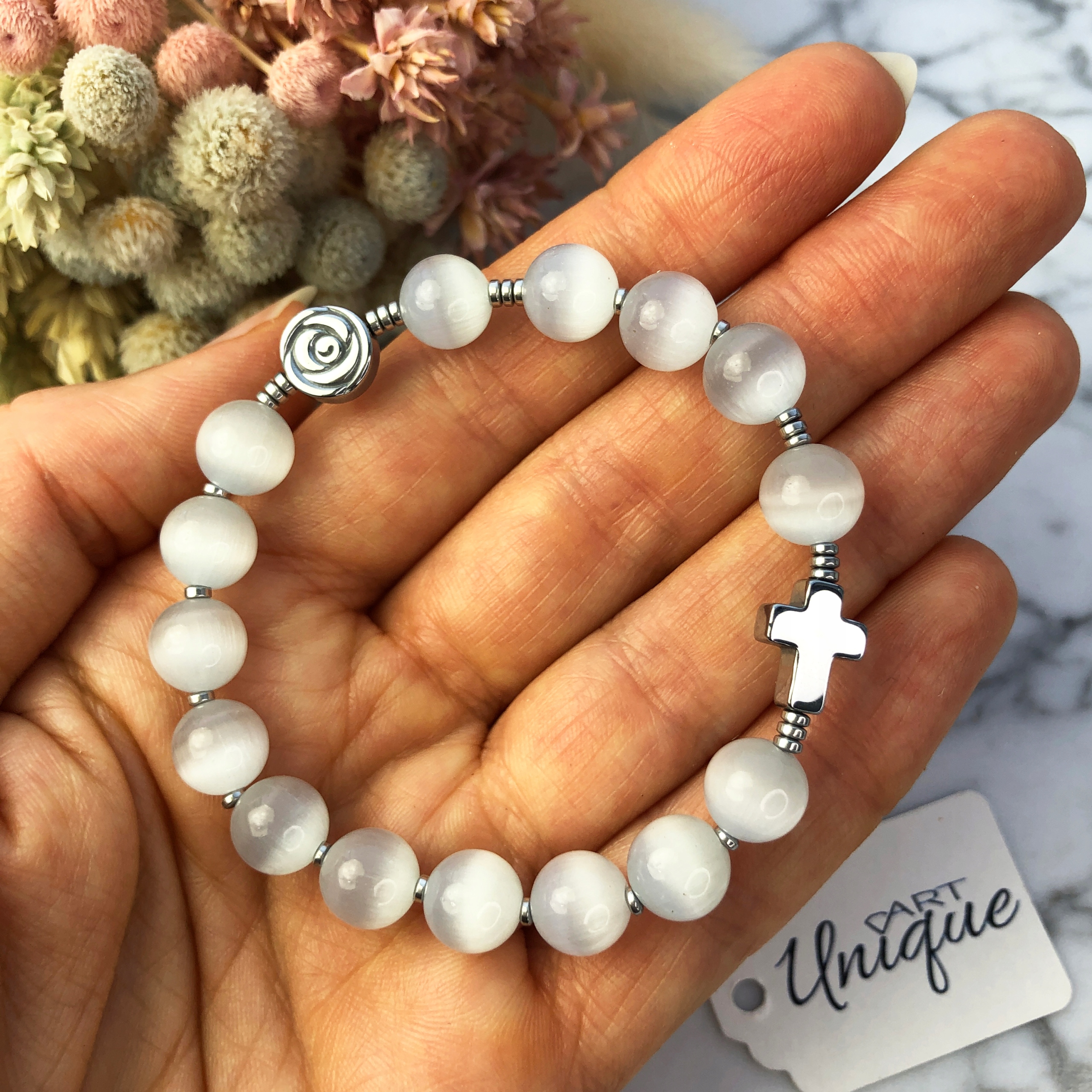 Браслет РОЗАРІЙ на руку як сувенір на ХРЕЩЕННЯ/ПРИЧАСТЯ для дівчинки