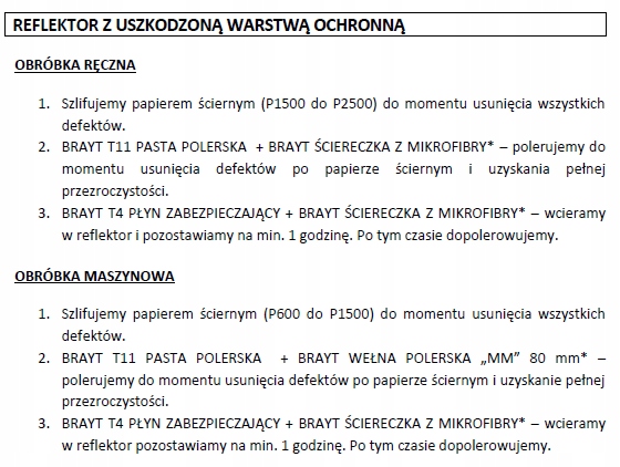 - нанесіть полірувальну пасту BRAYT T11 вручну за допомогою м’якої мікрофібри або машинно за допомогою чорної полірувальної губки