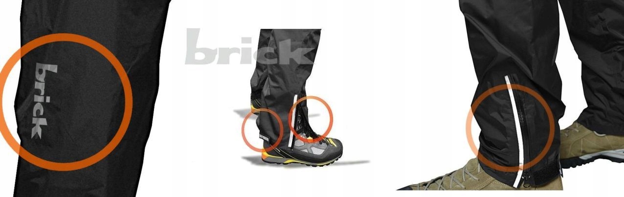 штани виготовлені з водонепроникної просоченої тканини (нейлон, 100% ПА, 100% ПУ покрив) із середньою товщиною, завдяки якому вони займає мало місця в багажі.