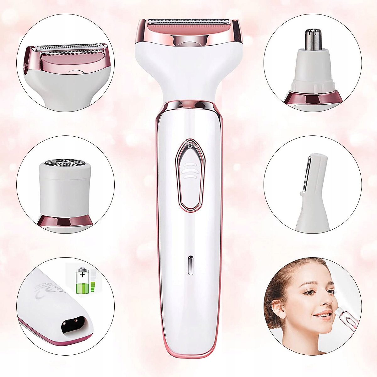 ✅ Набір електробритви 4-в-1 включає 4 багатофункціональні змінні голівки для гоління, які дозволяють миттєво видаляти волосся з обличчя, рук, ніг, зони бікіні, носа, брів тощо, роблячи шкіру більш гладкою тому вам не доведеться турбуватися про небажане, непривабливе волосся будь-де.